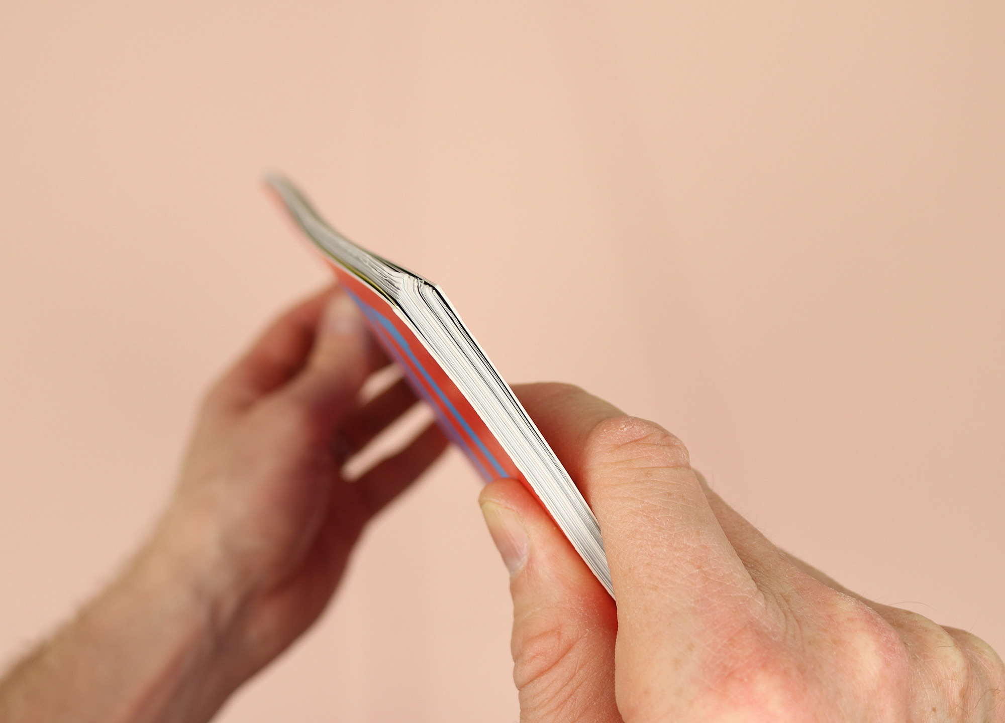 Seen from this perspective, the binding becomes an obstacle that’s put in place to slow the reader down and encourage a more contemplative experience. The team continue by pointing out that while it’s not easy to flip quickly through the pages, when the magazine is placed on a table, the stapled binding means that every spread opens flat, with none of the pinching normally found in perfect bound magazines. So it’s all about perspective – a design flaw in one respect is turned around to become a unique design feature.