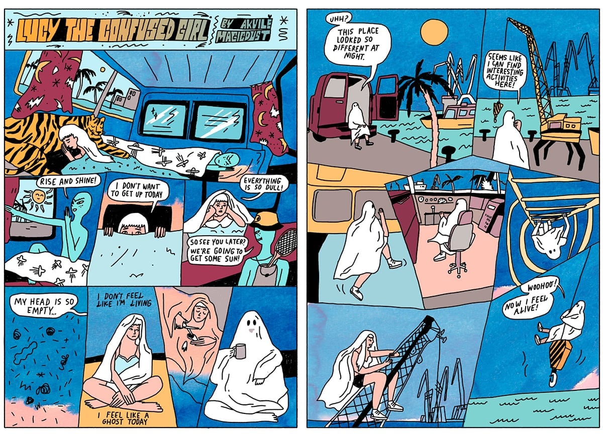 Lithuanian illustrator Akvile Magicdust was the 2017 winner of the ELCAF x WeTransfer award; a fund for the development and publication of an original idea. Akvile had previously drawn for a weekly comic on Vice where her protagonists Lucy the Confused Girl, Tiger and Alien undertook comical and often quite bizarre adventures into the world. Her book, Tropical Wildchilds, which will be debuting at ELCAF 2018, is a 64-page, full colour, soft cover, book featuring all three characters as they take the reader on an eye opening journey from planet Kepler 187f to the Amazon rainforest. akvilemagicdust.com