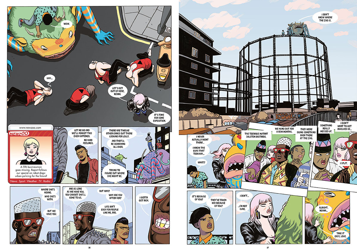 It’s been years in the making and we’ve been patiently waiting for Dilraj Mann’s first full length graphic novel with Nobrow Press to be published…. Finally, finally it’s here! Dilraj has attended ELCAF for the last four editions, each time bringing with him a fresh stack of prints and mini zines featuring a sassy gang of London-ites pouting their way meanly across the pages. Dalston Monstaz, though still located within the pit of East London’s trendiest quarter, is a different beast altogether. In the vein of Joss Whedon, Attack the Block, and Saga, this is a story of friendship and corruption in a vision of the future not far from today. nobrow.net