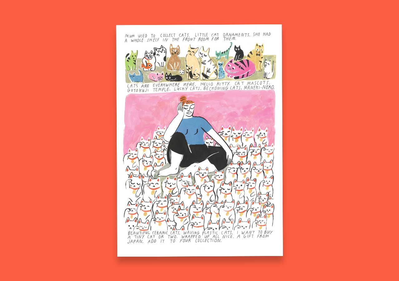 Jayde Perkin won the ELCAF x WeTransfer Award 2018 for her proposal I’m Not Ready, a full-length graphic novel about the loss of her mother. Her comics, which use songs as their titles, are about the ways we attach memory to music, and places; and the process of listening to those songs and visiting those places again while grieving.