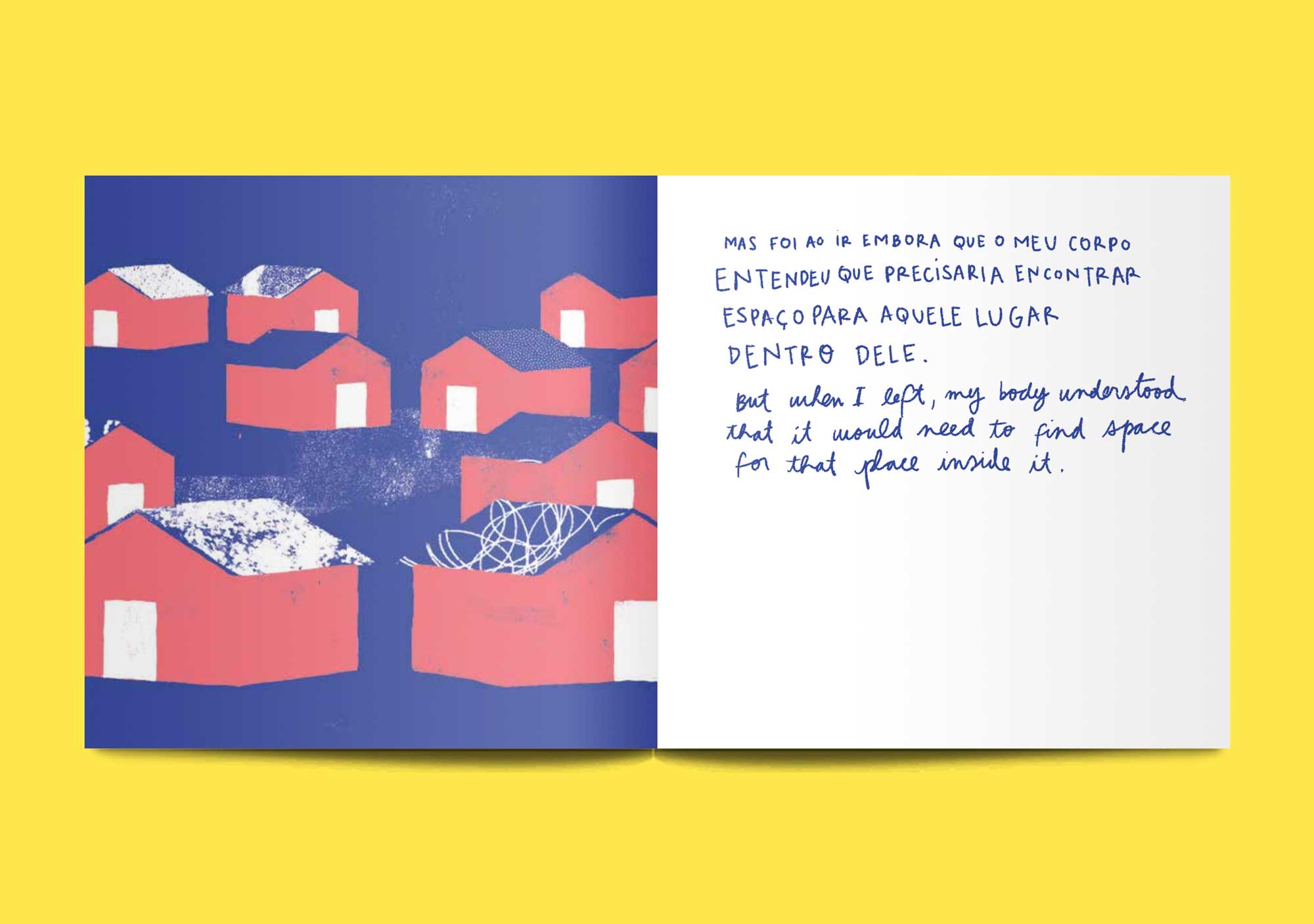Launching at ELCAF this June is the gorgeously illustrated Ground Floor, written by Camilla Costa and illustrated by Gui Athayade. Published in Brazil, the book reflects on the act of moving and leaving a home, with sparse text written in both English and Portuguese. The illustrations themselves depict a person, or a body, in transition. Here physical movement is grounded by internal stasis; or longing for a home that once was. The illustrations consume the pages in pastel blues and pinks, or sometimes get stripped back to leave only the text hand lettered and running parallel in both languages.