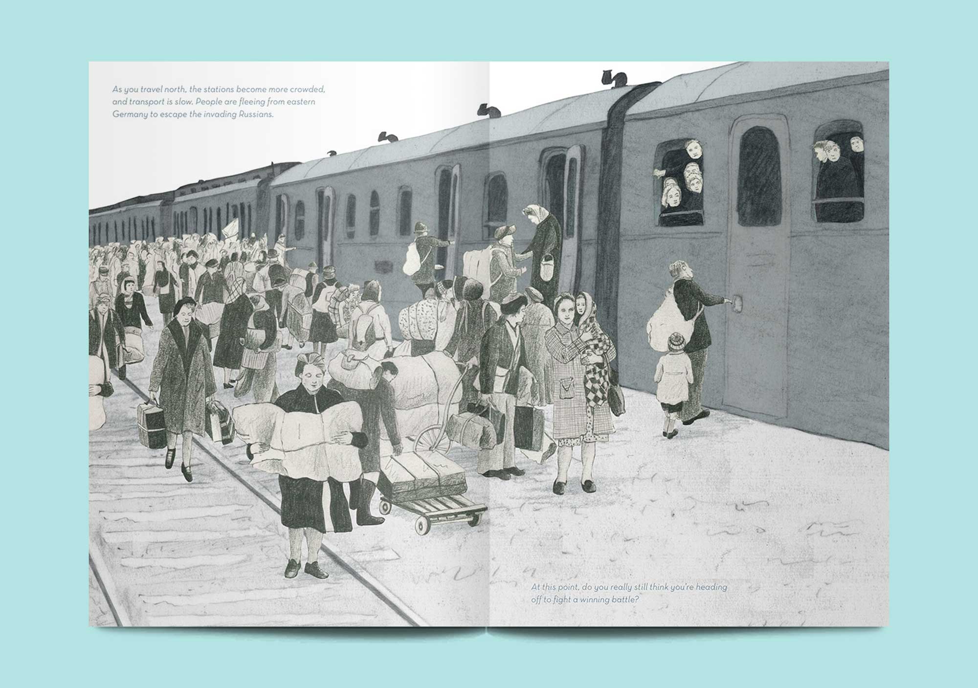 Serena Katt began work on Sunday’s Child at The Royal College of Art in 2013 as part of her final year piece. Published as a full-length graphic novel in 2019, Katt interrogates the history of her grandfather, Opa, who joined the Hitler Youth at the age of 10. It’s an extraordinary piece of work, taking the shape of conversation between grandfather and granddaughter; and a dialogue between past and present.