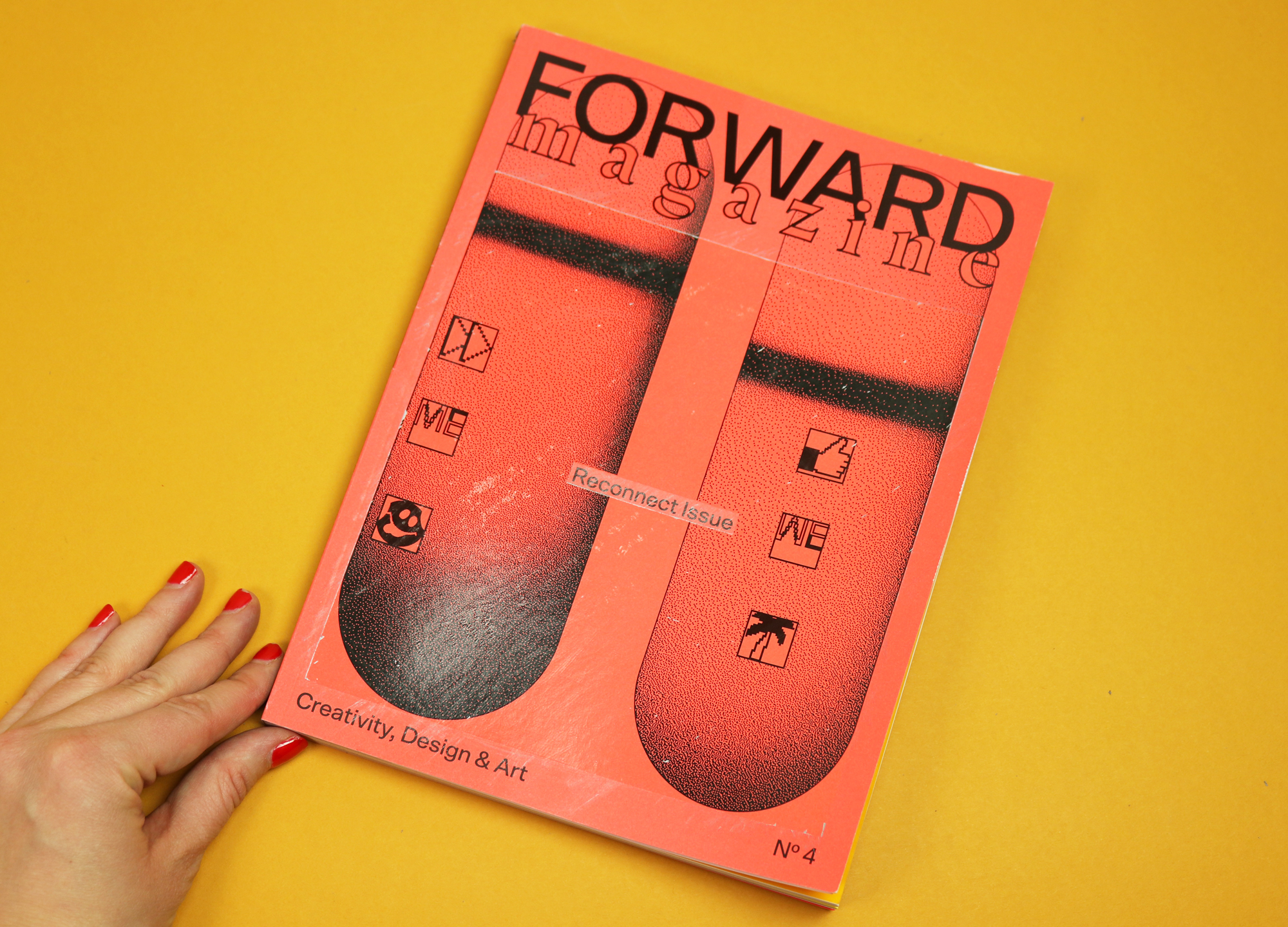 More emojis and the Facebook ‘like’ button (this is, after all Forward’s ‘Reconnect’ issue). Other discoveries include the fact that scratching an entire magazine clean really, really makes your arm hurt.