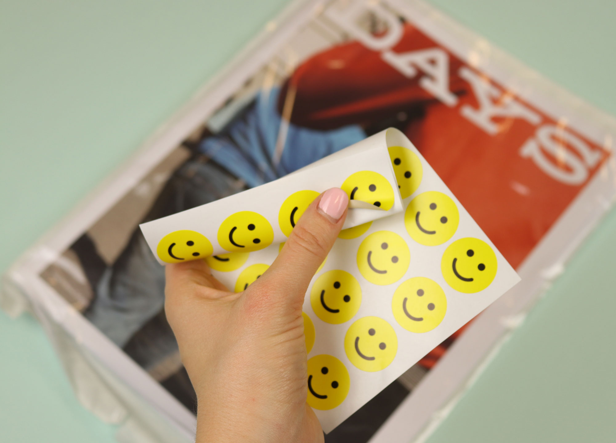 Happy Days comes with a set of yellow smiley face stickers, which reminds me of a life-hack people advise you to do at the start of a new year. You’re meant to take your diary, and mark each day with a little face: sad for bad days; smiley for good. At the end of the week you count up the faces. If there are more sad than smiley: bad news.