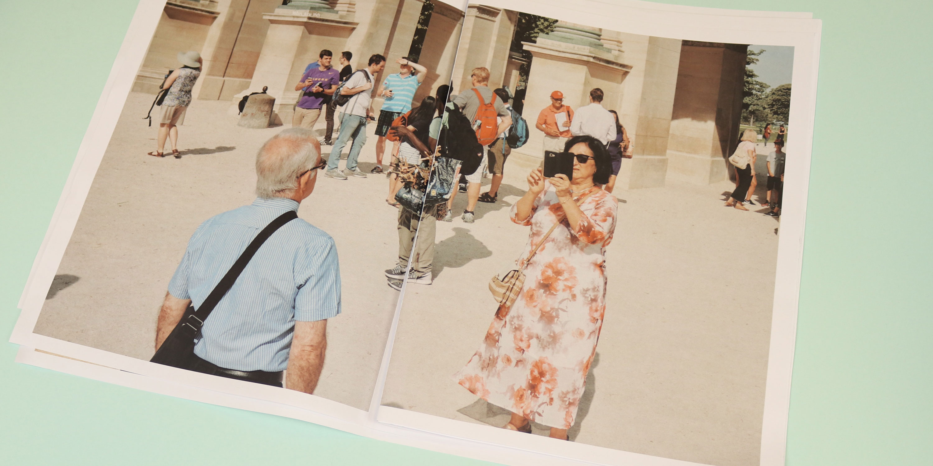 In the daily observations, photographed by Ronan Gallagher, nobody wears a mask, and people press close together on sun-dappled streets. In one image, tourists pose for photographs in a Milanese square. The caption reads ‘Milan, June 16th’. Can this really be 2020?