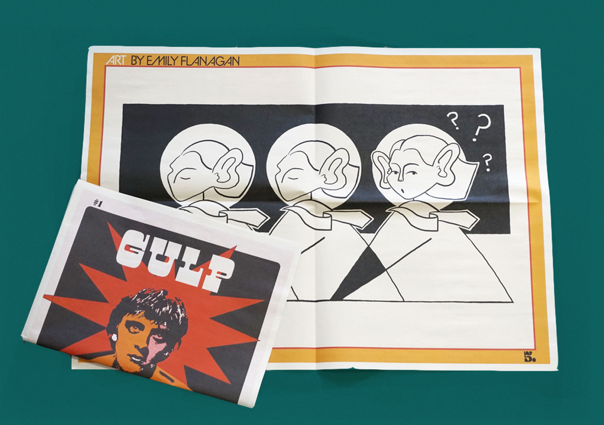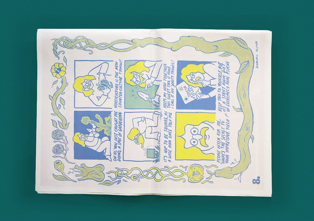 Inspired by 1960s counterculture publications like Oz, Gulp is a broadsheet-sized publication “for anyone who wants to feel something good.” From the striking front cover, showing David Hemmings in a famous scene from Blow Up, to the back cover comic about a gardener who credits his plant’s growth to “a strict audio diet of extremely rare psych” — Gulp is a richly illustrated reading experience. The presiding theme is optimism: “It’s so important to us that we strive for more positivity,” explains Tomas Walmsley, who created Gulp with Natasha Kay-Sportelli, “especially when there is so much negativity flying around.”