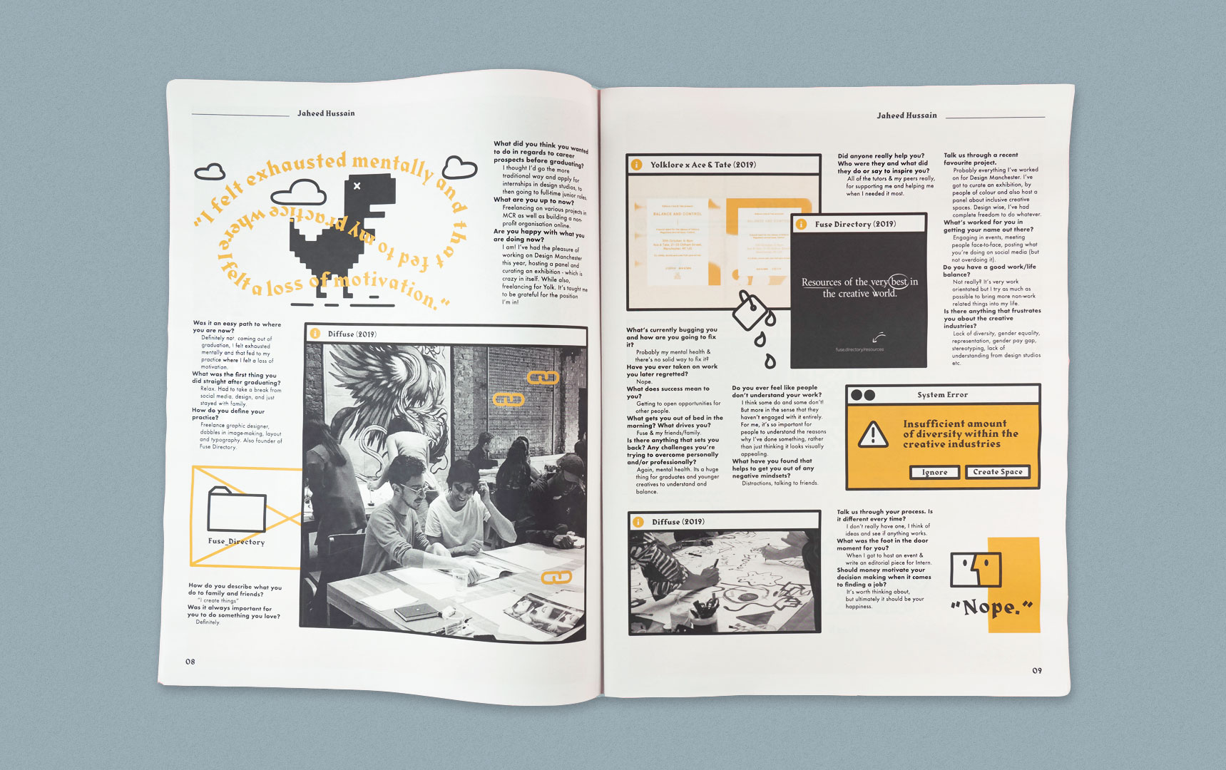 Scary F*cking Times addresses the fears of students and new graduates hoping to work in the creative industries. Created by Louise Hardman, a graphic design student at Salford University, it features advice from Manchester-based professionals who have graduated from creative courses, covering issues like confidence, diversity and mental health. “After an overwhelmingly positive response, I’m hoping to share it as a resource for students and graduates,” says Hardman, who adds that she wants to develop the publication as part of a larger platform to support creatives.