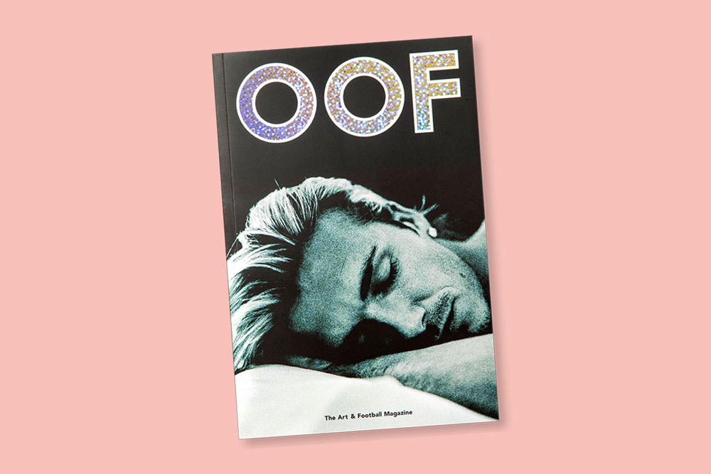 Oof combines art and football for emotional reasons. Because, editor Eddy Frankel explains, “football does with ease what art constantly tries to do: it makes people feel”. The need to feel something, with its underlying fear of not being able to feel anything at all, is a curious starting point for a magazine. The cover-star elicits emotion of a hysterical kind. It’s David Beckham, pictured naked and sleeping, so close-up you can almost smell him. The theme for this edition, Oof’s third, is obsession: the pleasure and the pain of feeling too much.