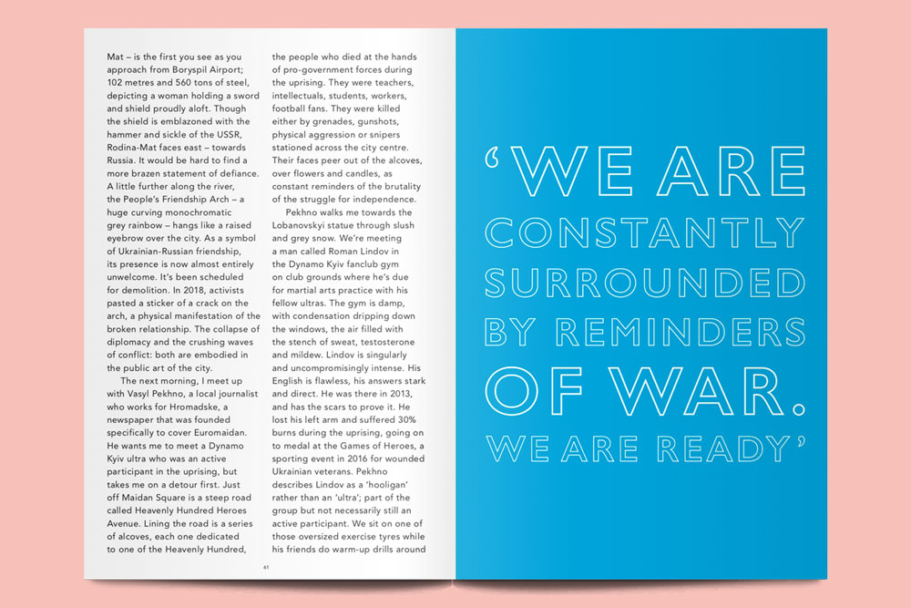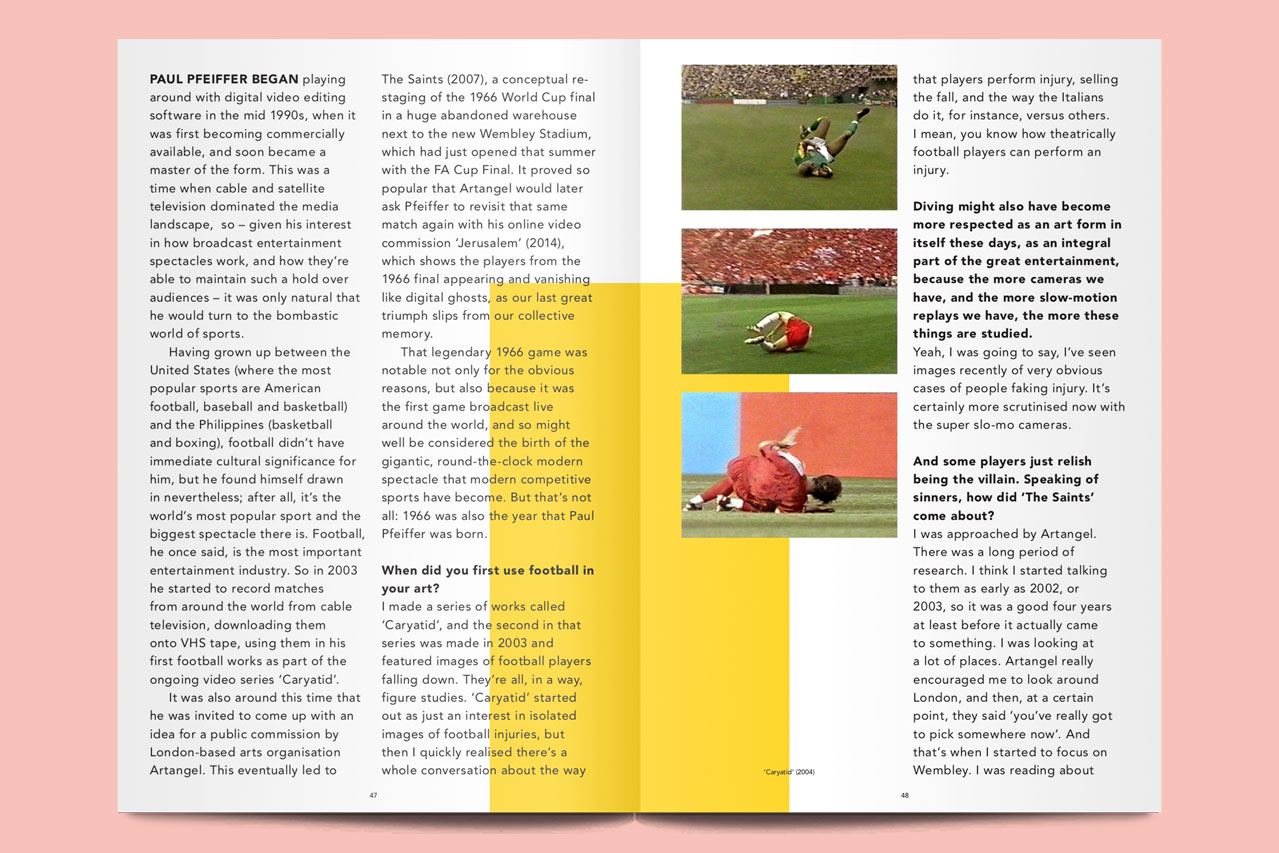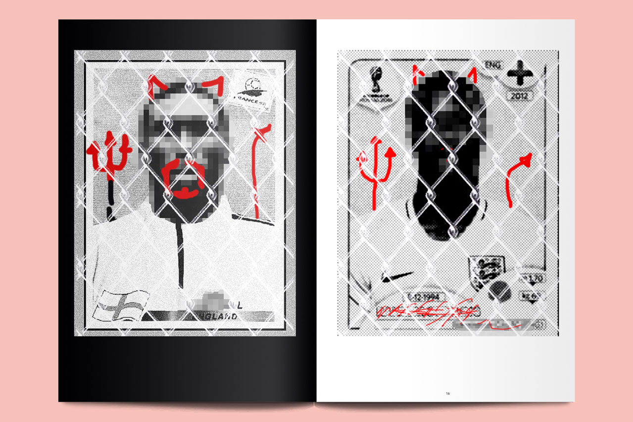 All the pieces in the issue deal with the complexity of devotion. Eddy himself travels to Ukraine to interview hooligans who organised a truce in the middle of a revolution to save a statue of a football coach. There’s a hopefulness to that story of fanatical love. But the violence implicit in loving — the way we trash, as well as treasure our idols — is keenly felt throughout the magazine. Particularly in the opening feature, which explores the demonisation of black footballers in the press, via analysis of the artist Ashley Holmes’ football sticker-inspired ‘Panini Series’.