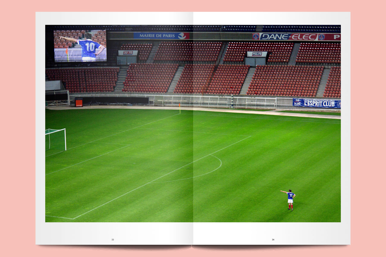 My whole thing with how I approach the content of Oof, is that I’m not interested in art that’s about football. A painting of a famous player, or of a historic moment in football history: I don’t care about that shit. What I care about is the way artists use football to say something about society. And most of the art in this third issue deals, in some way, with the concept of obsession. We deify the footballers that you can see blown up to giant size in Ashley Holmes’ collectible sticker-based ‘Panini Series’, we idolise and objectify players like David Beckham as in Sam Taylor-Johnson’s serene sleeping portrait. Or maybe we let the obsession REALLY take hold, like the Swiss artist Massimo Furlan, who recreates whole games from history, but by himself, without a ball, for a full 90 minutes. Every one of these works offers an insight into the human capacity to obsess, to devote, to love something beyond reason.
