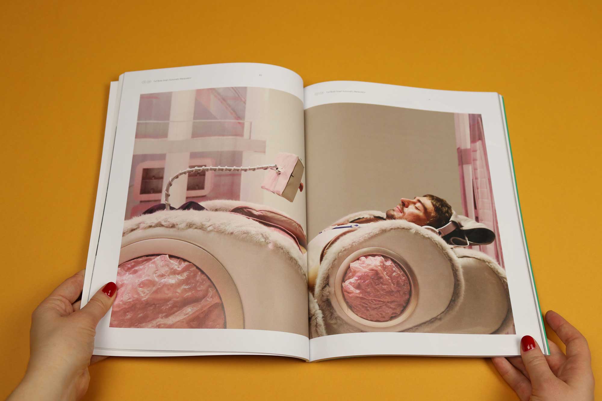 “We touch machines — our phones — all day long but how often do they touch us back? The examples that spring to mind are painful: torture machines, or electric chairs. But a massage chair mechanically touches you and it’s pleasurable. The Full Body Smart Automatic Manipulator pictured has a fleshy body and augmented voice; it asks the user questions about how he or she would like to be touched but then it unexpectedly deviates from those instructions. So this project is about creating a weird relationship with a machine. It’s about how intimate we can get with a machine.”