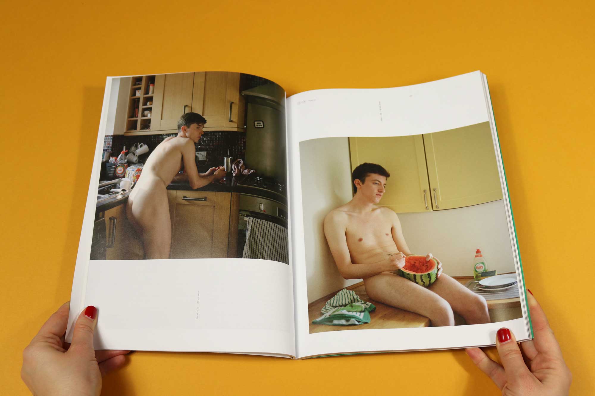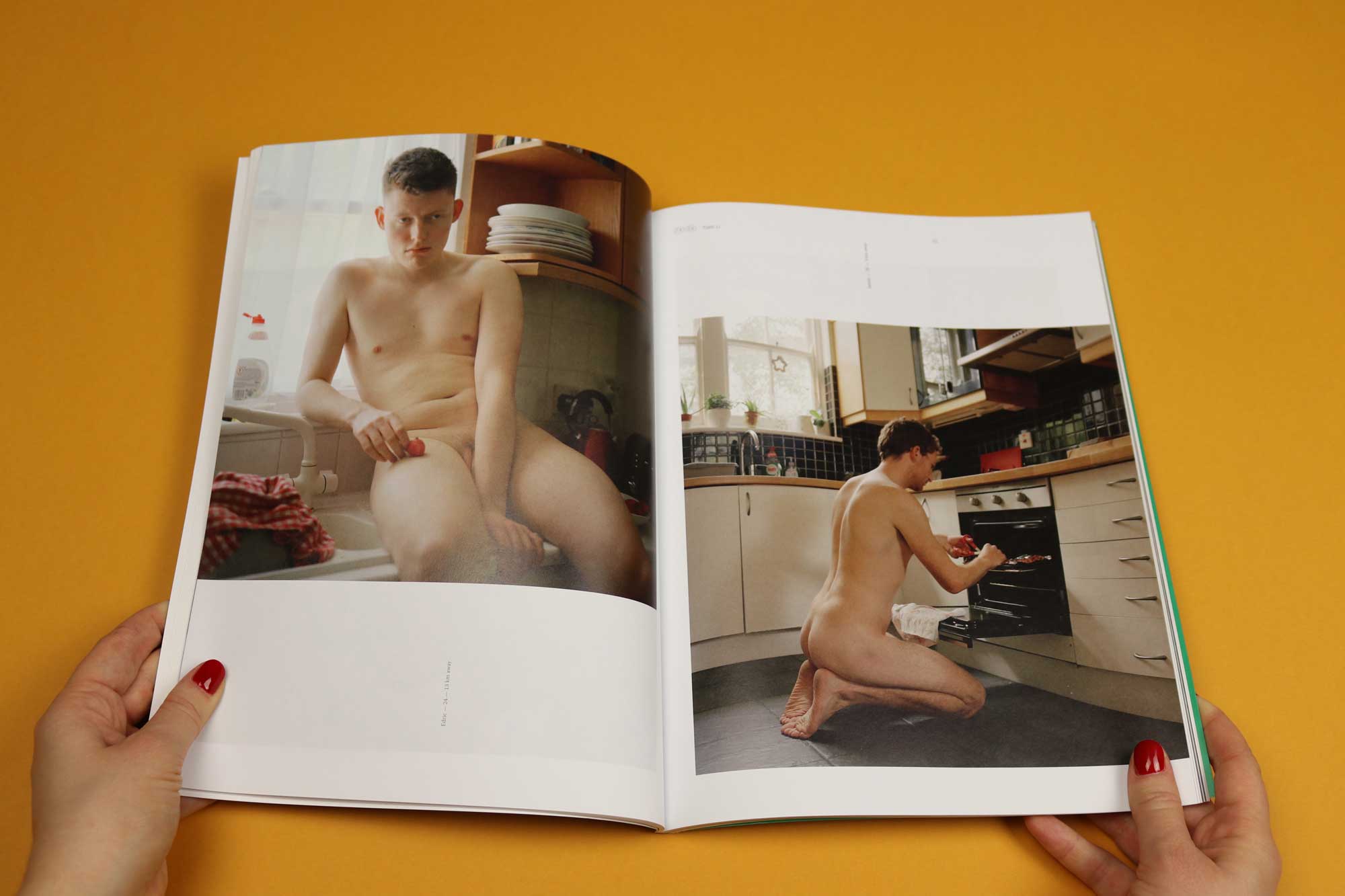 “Partly inspired by the ultra-sexualised images of women ostensibly busy in the kitchen from the 50s, Yushi Li — who is interviewed here by Stella Ammar — contacted 300 Tinder matches to ask whether she could photograph them nude, while they ate or cooked. Apparently only one guy asked for sex afterwards. The second series, ‘Your Reservation is Confirmed’, she booked men from a modelling agency who she believed were her ‘perfect guys’, and put herself in the picture. It’s so strange to see a woman fully clothed while a man is naked. Although we see half-naked women with normal guys all the time.”