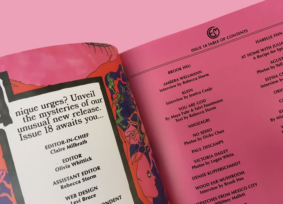Essentially an art magazine with a curiosity for deviating eccentrics, it beguiles with a kooky sense of humour — it’s one of those titles that always looks like so much fun to make, and you definitely imbibe its pages with just as much giggly delight. “Guaranteed to build strong imaginations”, their latest issue shows an array of artist profiles and musician Q&As, among fashion shoots that evoke a sense of magical realism; you’ll also find quizzes, an ‘interview’ with a woodear mushroom, and a shudderingly-accurate satirical comic about selfishness by Walter K. Scott.