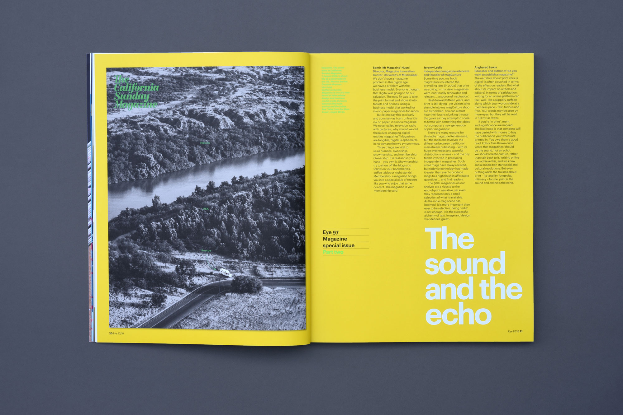 John L Walters and Simon Esterson are the editor and art director of Eye magazine, the international review of graphic design. Their latest issue is the second in a two-part special focusing on magazine design, and it’s their biggest ever edition, packed with fascinating interviews and comment covering both the mainstream and independent magazine worlds (and the places where those two realms intersect).