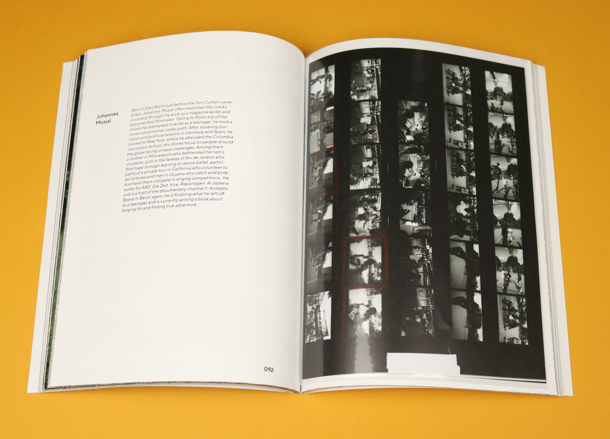 There is a similar pleasure to be found in a feature about the photographer Andre D. Wagner, who takes photos between Bushwick and Manhattan. The photographs themselves are interesting but what I like best is the way they are presented. In a delicate plastic wallet inserted into the magazine, we see rows of negatives, with circled favourites. Turn the page, and you see the chosen image blown up.