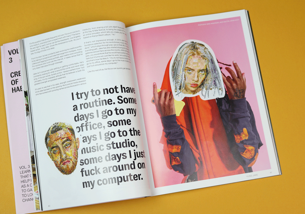 “It’s something most of us can relate to in some way — the artist and rapper Yung Jake says cartoons are his greatest distraction, but he also says they’re valuable in the sense that they help him think outside the rules of the physical world. Distractions are typically thought of in a negative context but sometimes they are just what the mind needs; distractions allow our conscious mind to wander while the solution gets worked out by our subconscious. Jake clearly has an expansive perception of his surroundings and a restless mind, yet it’s amazing just how much wildly creative content he manages to produce.”