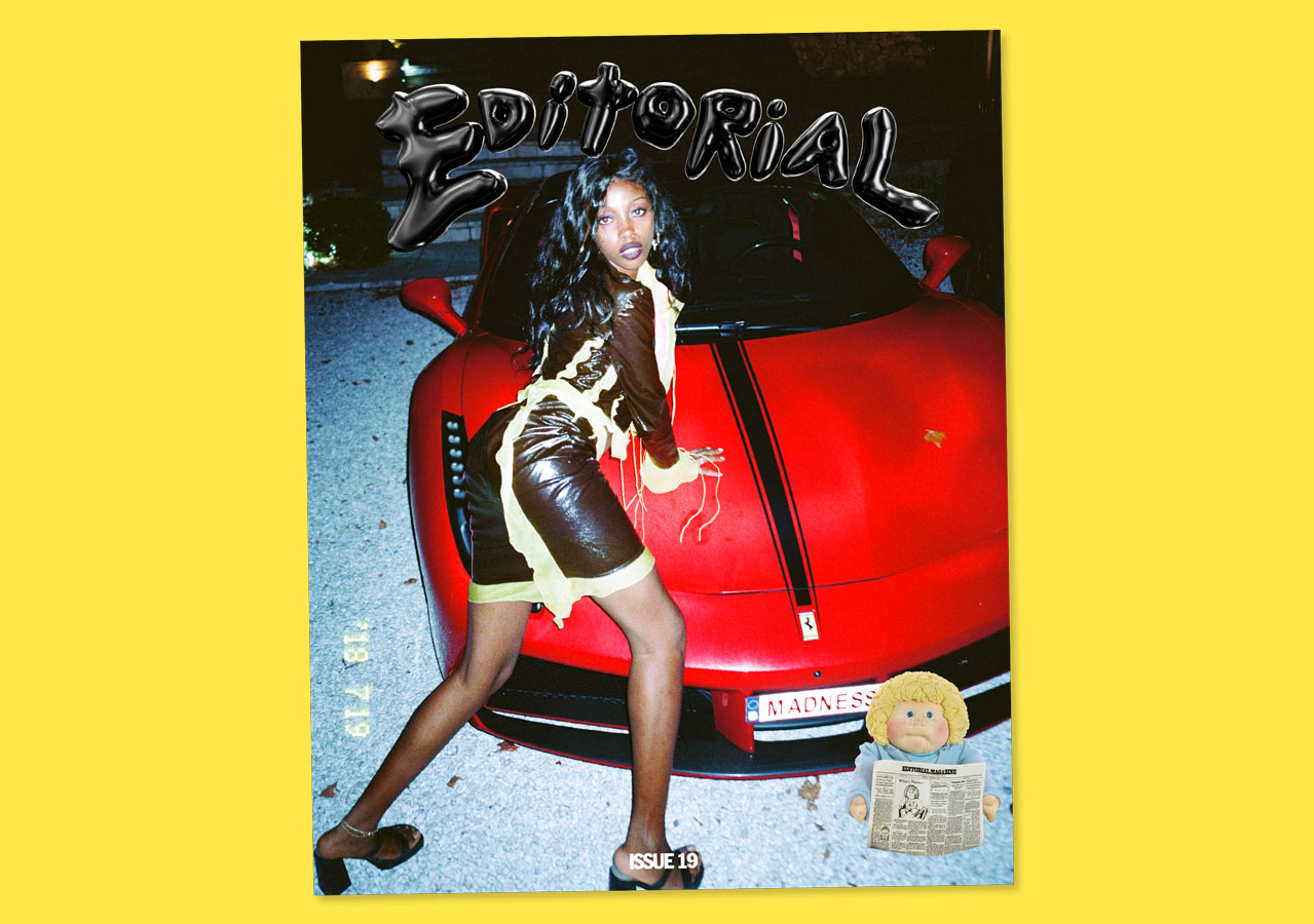 “Recently I got this feeling I hated fashion, which is a weird thing to happen cos Editorial is, like, a fashion magazine. I started viewing editorials as just extended ad campaigns for luxury products none of us can ever afford. Not to mention the damage brand worship and trend turnover does to our planet. Last year we decided to zoom up on what’s actually special about fashion: self-expression and creativity! Zaina Miuccia, our cover star for issue 19, makes me excited about fashion again. Each of her looks is an attitude and an art form in its own right. Her shoot, called Piglet and Ivar, is in a sense anti-fashion because it showcases personal style, as opposed to items being sold to us. The fact that Ivar – who photographed the shoot – is Zaina’s lover shows through in the images; it’s a kind of intimacy you can’t often achieve with photographer-subject relationship.”
