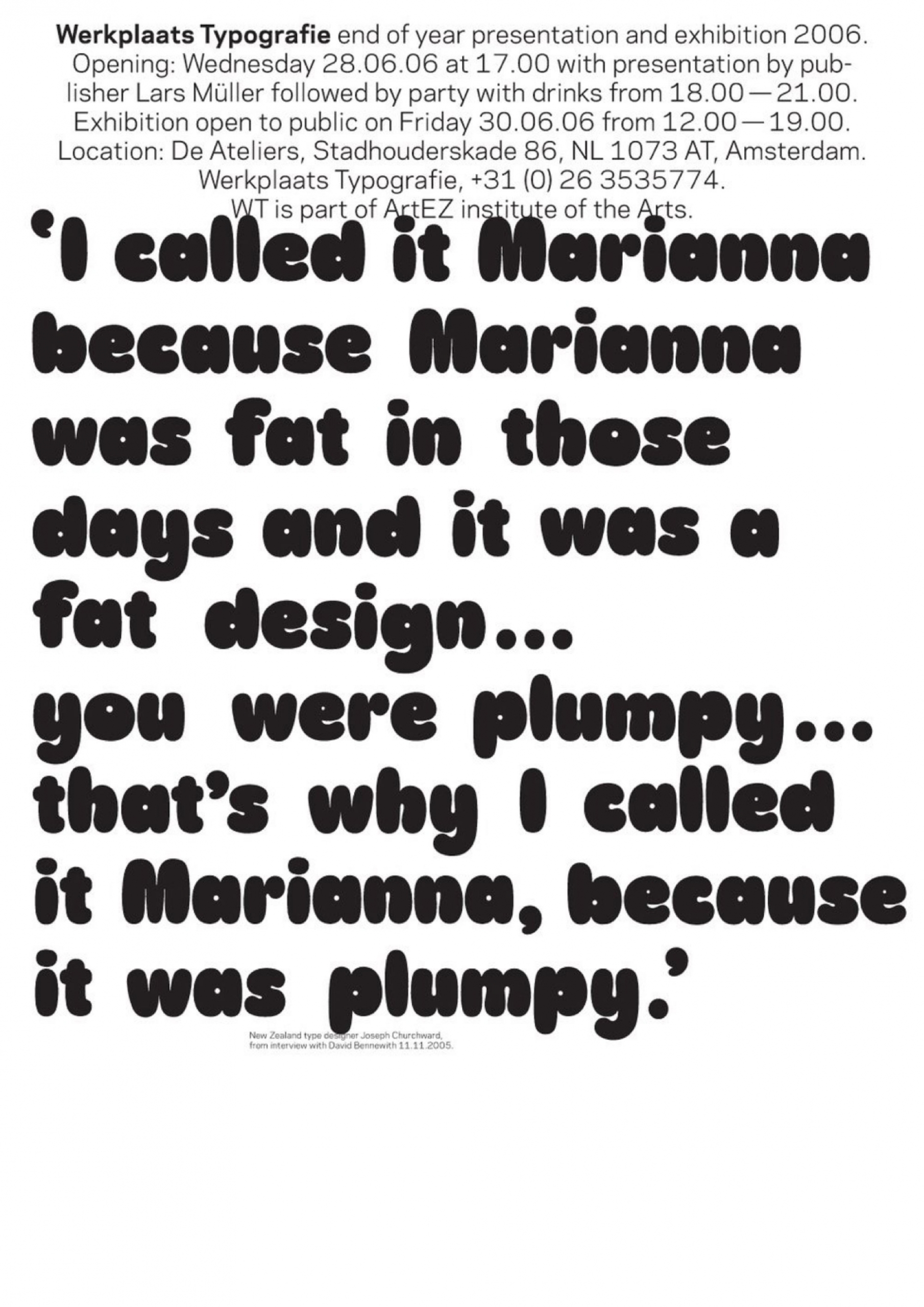 I think the typeface is very important for a magazine. It’s like a voice. You need to have the right tone. Of course, the magazine is not just my project, or Ernst’s project. It’s also Sandra Kassenaar’s, who is our graphic designer. Sandra’s boyfriend had made a book about the type designer Joseph Churchward, which was how we found out about him. He was a very special type designer because he made every single one of his letters — 600 in total — by hand. I think the only piece of electrical equipment he had was a photocopier.