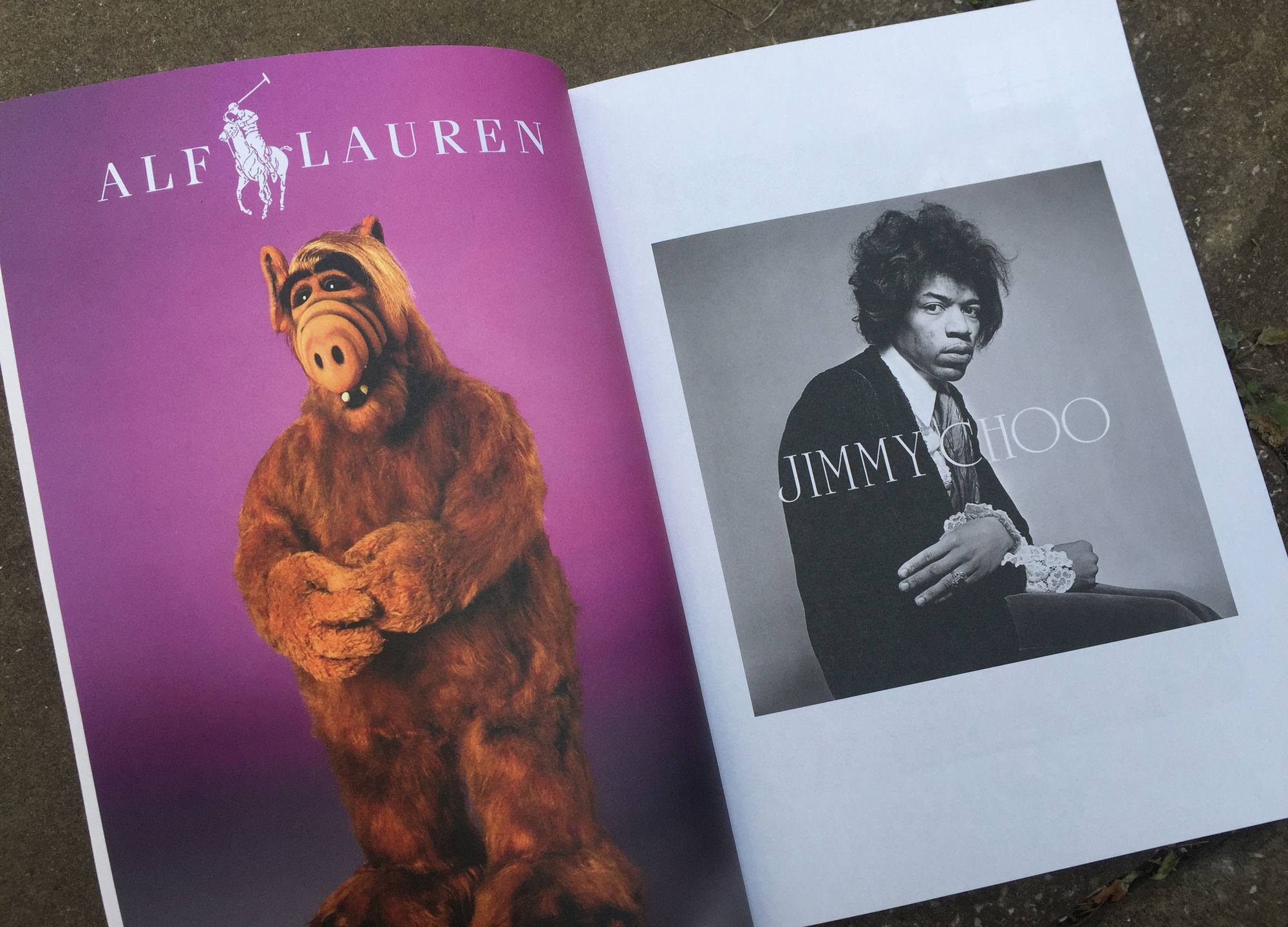 In this fourth issue, things have taken a more obviously commercial turn. Adidas tracksuits are featured, as are designer high heels. Interestingly, the first six pages of the magazine are devoted to a series of spoof advertisements: Bruce Lee models for Lee jeans; Alf the bear models for ‘Alf Lauren’. Part of Where Is The Cool’s revenue comes from brand partnerships, and the fake ads at the front seem to be acknowledging a certain level of discomfort with that fact — brand partnerships aren’t that cool.