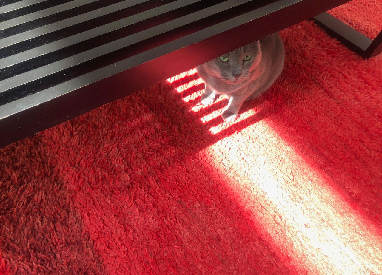 Now I’m inside all day every day I have such a connection with all of the things in my house. It’s like everything is so much more tactile. I find this carpet comforting because it’s like the ground beneath my feet, and it’s warm, and it’s the stage of life these days. That’s good but it’s also strange: I look outside and see the world going by but I’m not in it. I’m here on this carpet.”