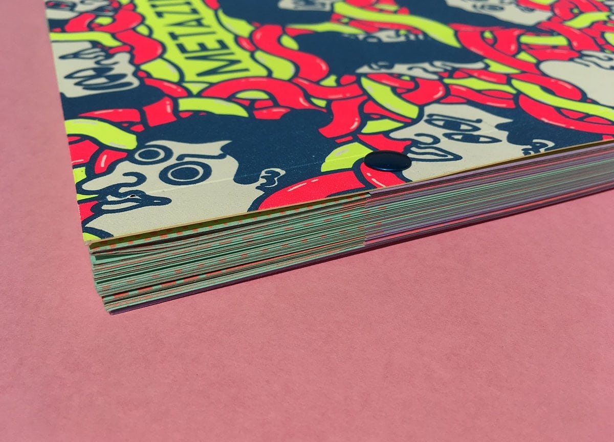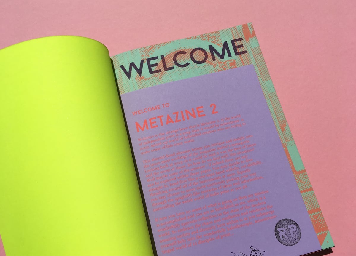 If we encapsulate 2015-2016’s dialogue surrounding UK independent magazines, it might take the form of Metazine. Named for its ‘meta’ approach, it is a gloriously indulgent magazine about magazines. Founded by Matt Gill against the auspicious backdrop of Nottingham Trent University, where he is a lecturer, it shines with conversations with independent publishers that provide a candid insight into the ups and downs of magazine making. Published by Raw Print, its second issue brandishes a cheerfully fluorescent cover, with a fittingly hodgepodge illustration by Dan Whitehouse that signify the many faces of indie print (above).