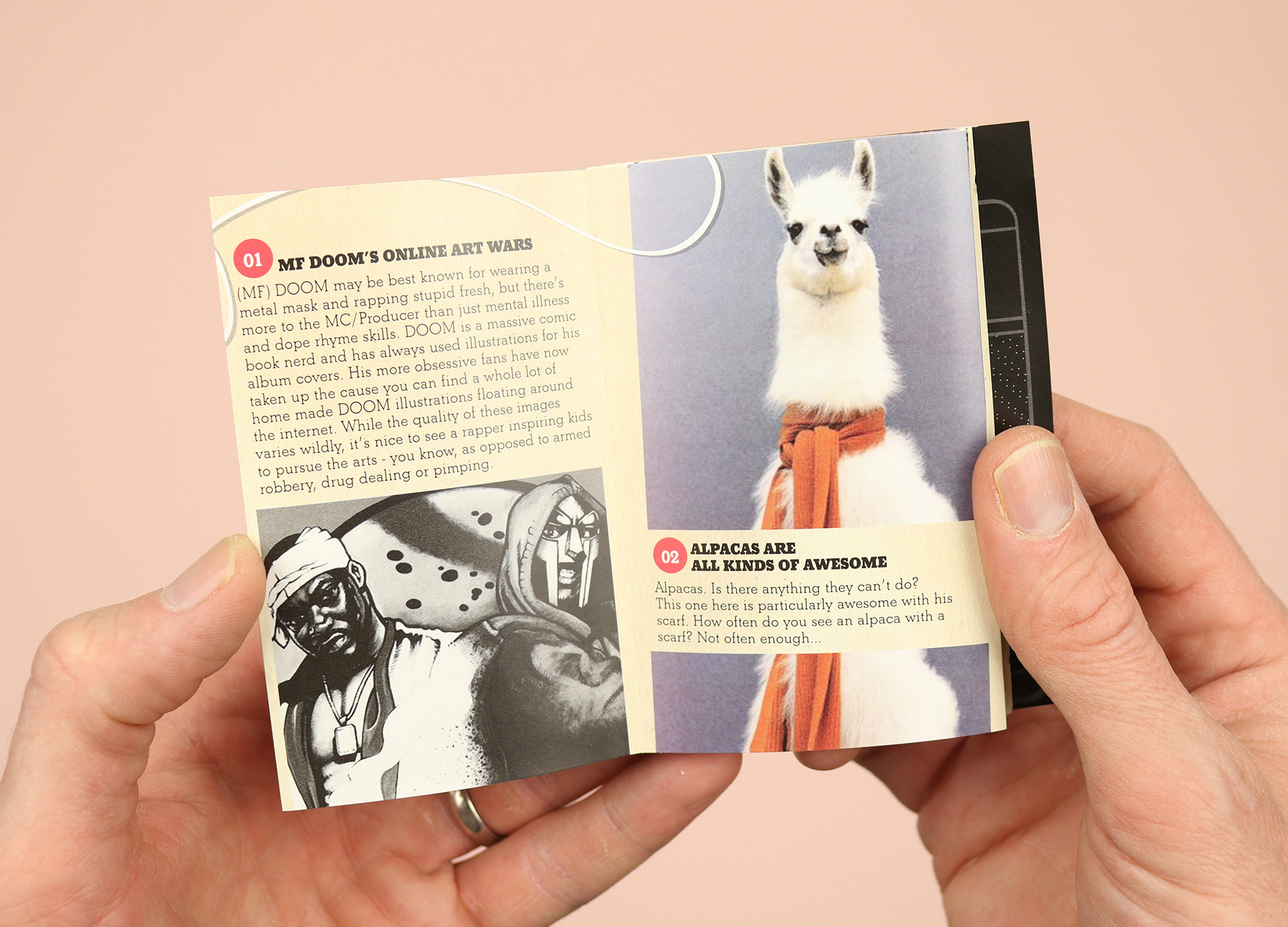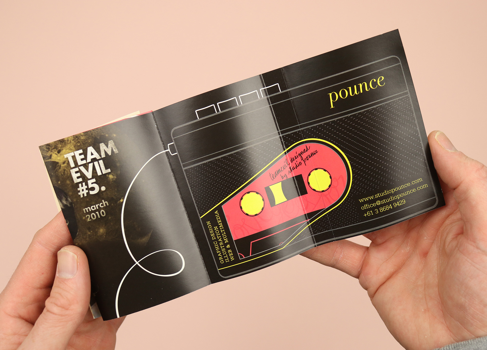 Another magazine squeezed into a cassette tape case, this collection of pop-cultural observations was published in 2010 by Melbourne’s Team Evil, adapting pieces that had been published online and printing them on a long concertina format that folds out with short pieces of text on one side and images on the other. In the introduction editor Mikolai remembers his schooldays, when “a mixtape was the quickest way to someone’s heart… This project has exactly zero to do with mixtapes, and very little to do with picking up girls. It does, however, have a whole lot to do with producing something you can hold in your hand.” And it worked – the Team Evil site has disappeared, but 13 years on Cassette Tape Magazine still has its place on our shelves.