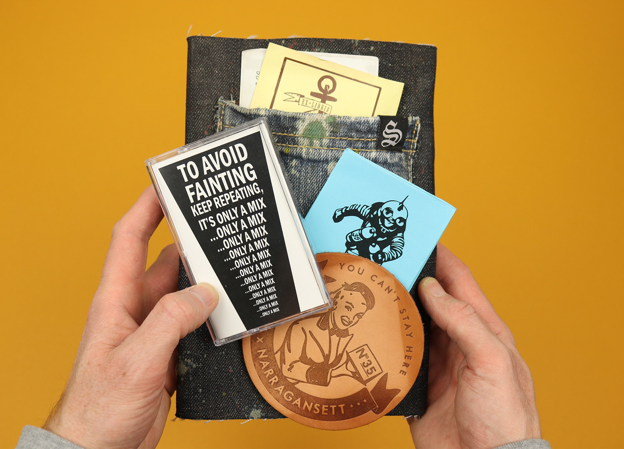 Issue 35 of Steez came tucked into its own denim slipcase, featuring badges, a patch, and a back pocket stuffed full with stickers, a leather beer coaster, and a cassette mixtape (a real actual cassette this time). It’s a brilliantly exuberant, totally over-the-top celebration of the magazine and the community that had grown up around it, and I think it was also intended as a farewell – the 35th issue was the last one Steez published.