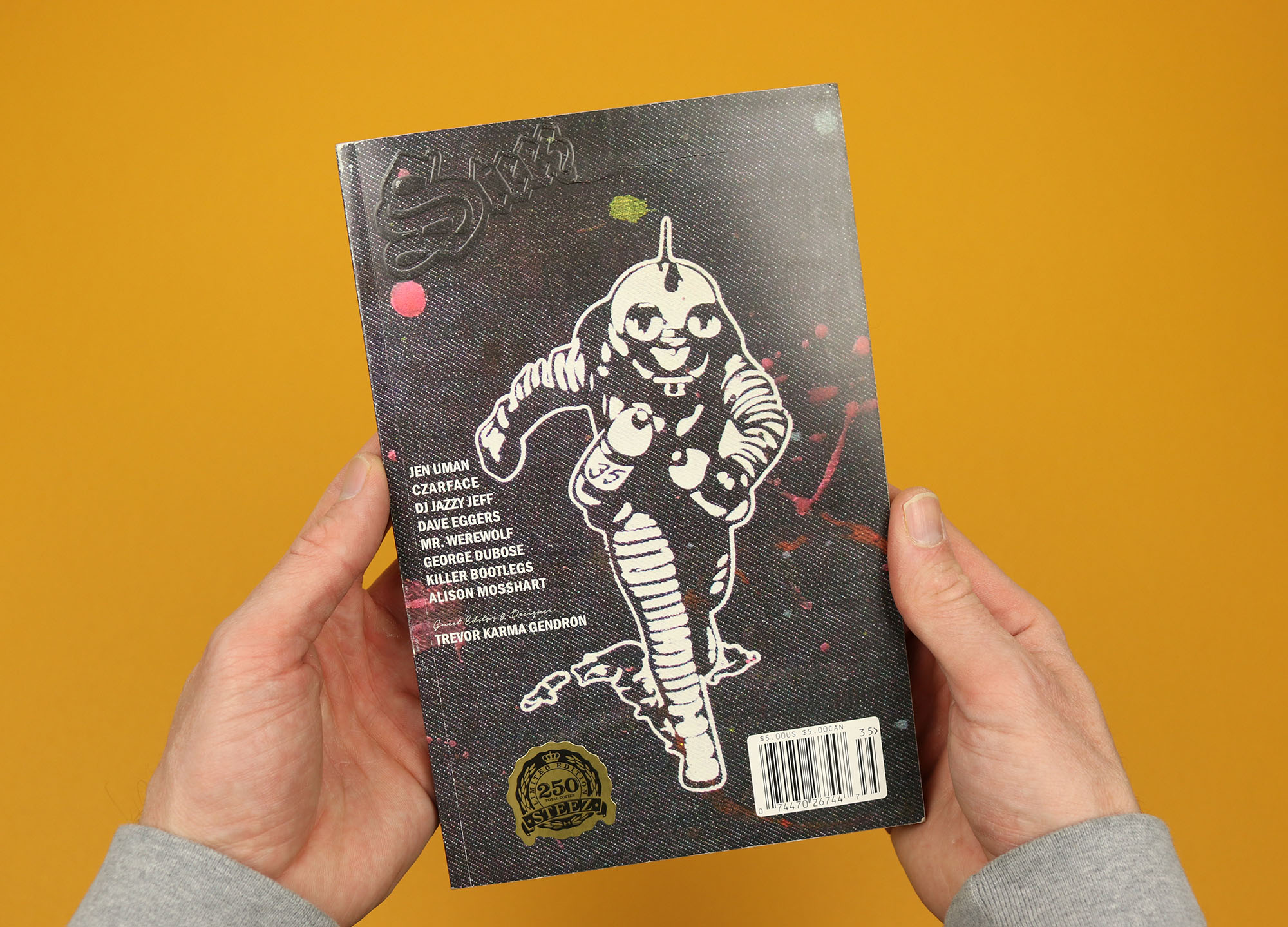 The magazine cover has a denim design that ties it into the slipcase, but more than that the jeans pocket seems to symbolise what Steez was all about; crammed with skaters, rockstars, DJs and artists, it was a celebration of lowbrow pop culture that overflowed with enthusiasm for its subject, in the same way the custom-made ephemera spills out of the pocket, feeling lived in and made with genuine love.