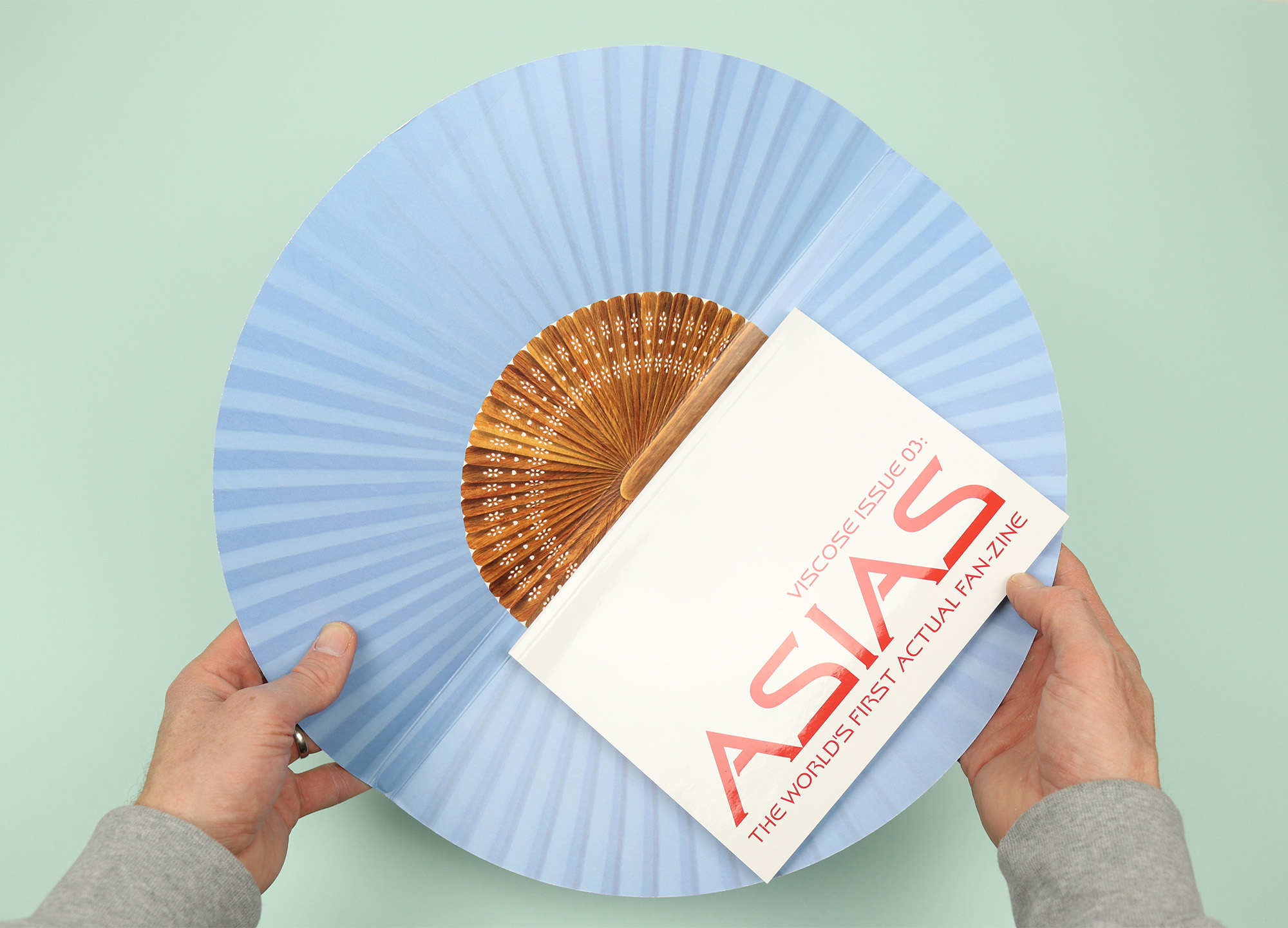 The most adventurous shape-shifting magazine in our collection is Viscose. A critical fashion title based in Ribe, Denmark, it looks closely at themes running through the fashion world, and is published with a sly sense of humour and a love for punning and wordplay. The first issue was presented as the “bagazine”, with a leather-effect cover and a handle cut out of the cover stock, while the third issue was the self-titled, “world’s first actual fan-zine”, with its fan-shaped case alluding to the theme of ‘Asias’, examining different notions of Asian style and fashion.