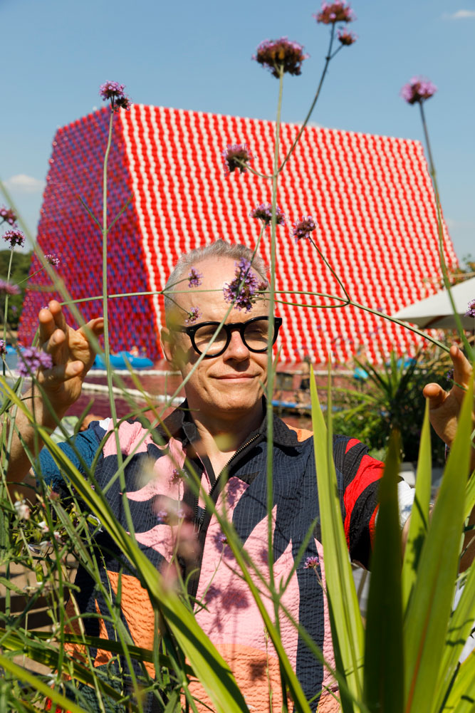 I wanted to feature Hans Ulrich Obrist on our cover as he’s the ideal influential European. When we were thinking of photographers to shoot Hans it became obvious to me that Martin Parr would be ideal — he’s always captured a subversive side of England. As Hans is so connected to the Serpentine professionally and personally, and given the huge success of the mastaba and the mix of old and new London, it made sense to shoot there. The whole day was glorious and felt like a very special moment in time.