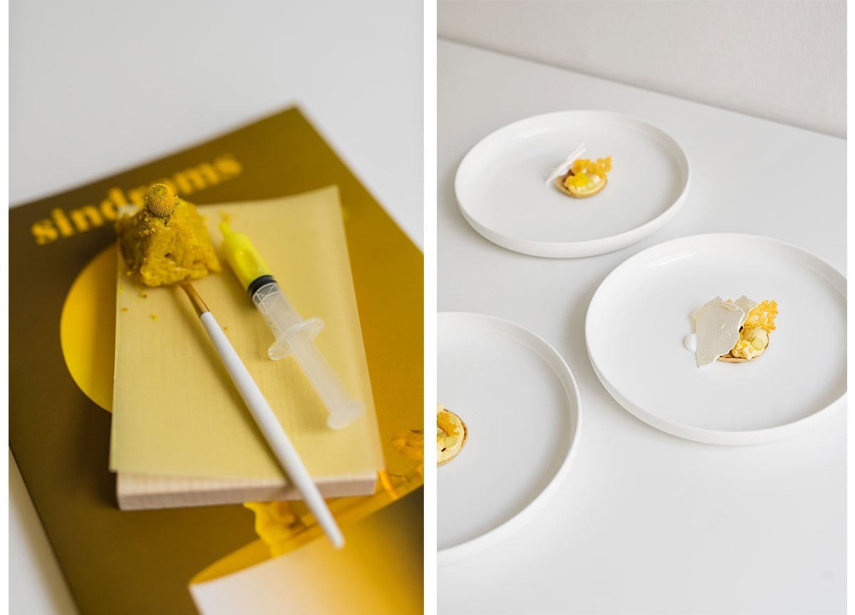 Have you ever thought about what yellow actually tastes like? Think of lemons, bell peppers but also bananas, cheese or turmeric. Difficult to put into words, right? But it’s even more difficult to get a taste through print. That’s why, for this particular piece, we wanted to unfold this experience together with Sweet Sneak — the creative food studio behind the article — and hosted a Monochrome Dinner that took all hues, textures and flavours of yellow into a five-course menu setting. By the way, if you haven’t tried Szechuan flowers, you’re in for a treat.
