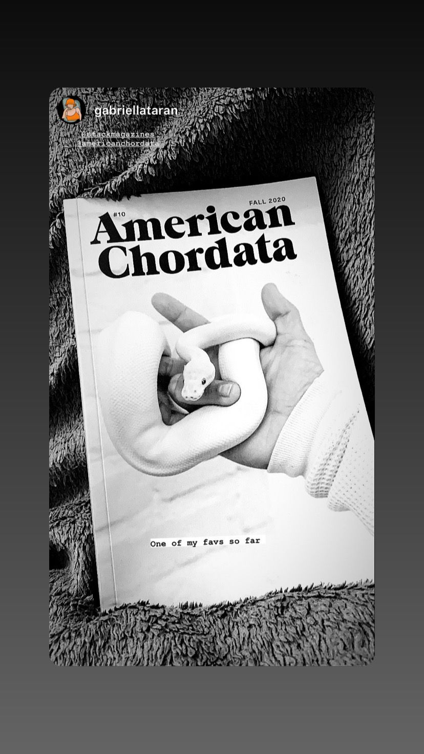 Long-time Stack subscribers might recognise American Chordata. We last delivered this brilliant little literary and arts magazine in December 2016, and we returned to it in September as it celebrated its 10th issue, a major achievement for the various teams of volunteer editors who have shepherded it through the last six years of publishing.