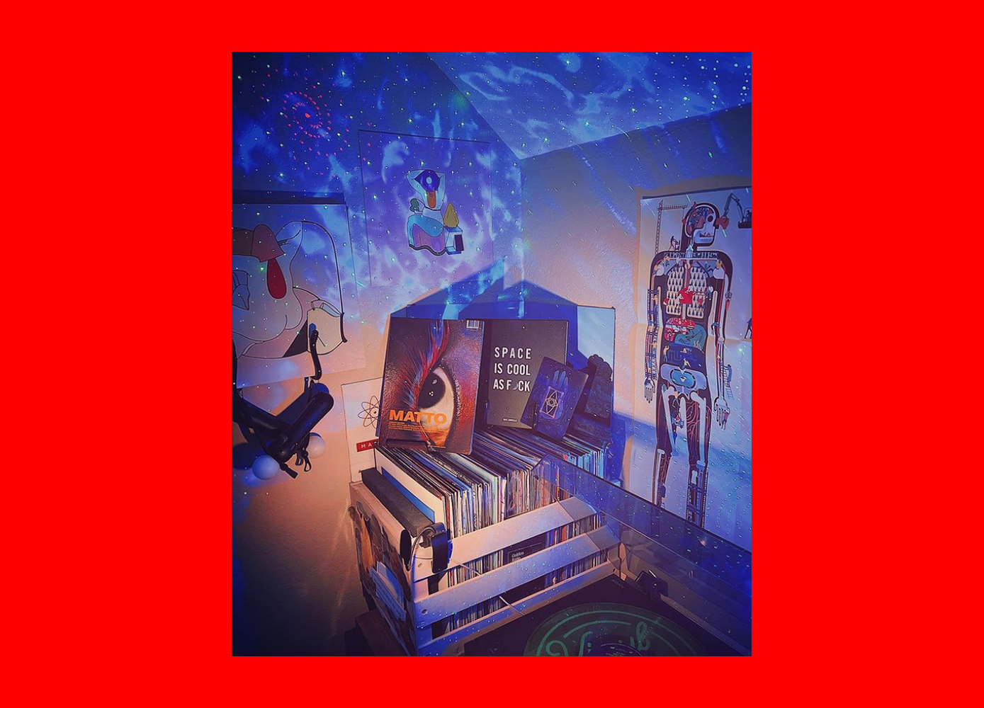 This image of Matto’s evocative eye glinting out in John Edwin’s wonderfully purple, space-inspired room is our June 2021 winner. Thank you John!
