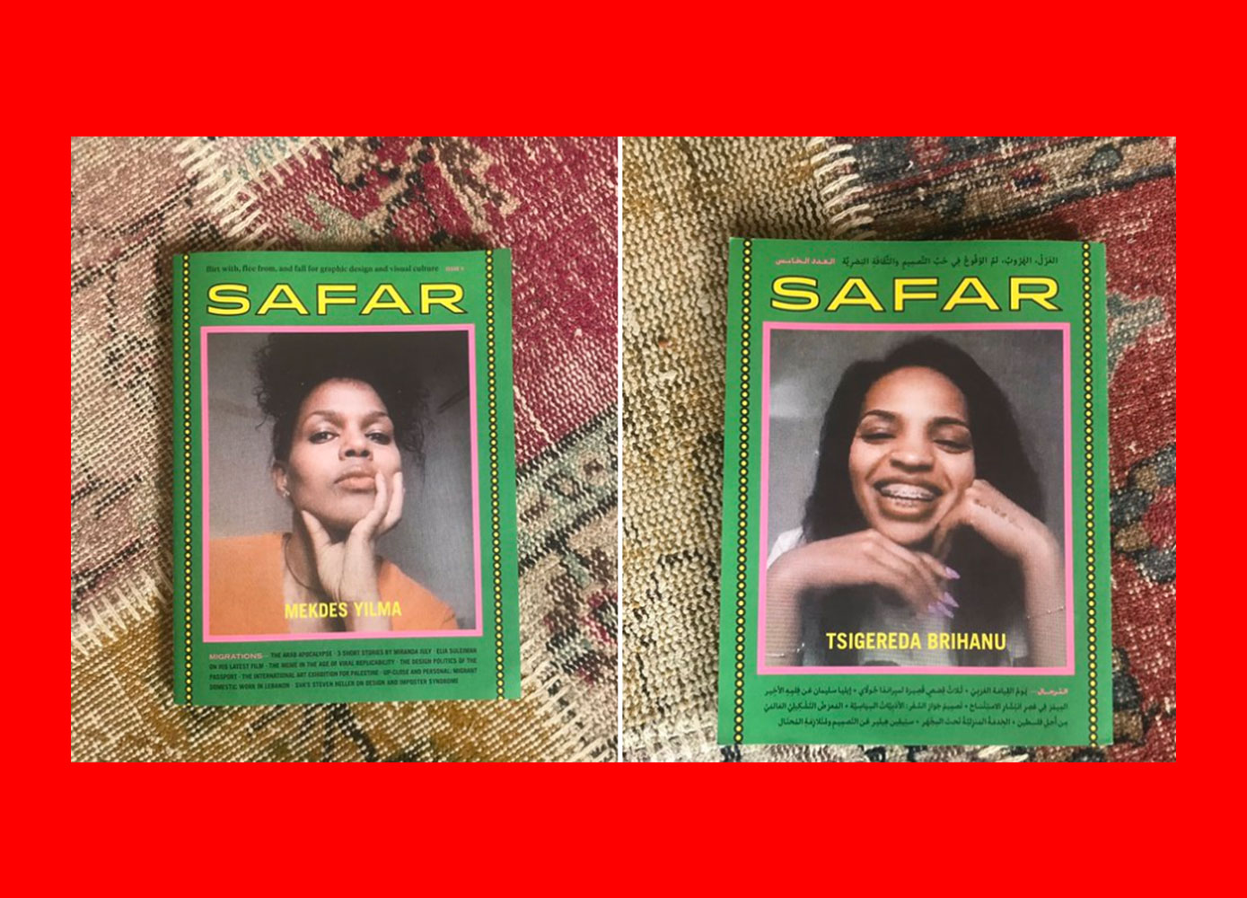 A design and culture magazine published in Lebanon, Safar takes its title from the Arabic word for travel — which refers to the idea of communication, especially across cultural and linguistic boundaries. The fifth issue is themed around migration and it’s eclectic. Treasures inside include an essay on the meme in an age of viral replicability, an architectural investigation into the concept of the “maid’s room”, and a Miranda July story about how to get a woman off. Entirely bilingual, everything is printed in both Arabic and English.