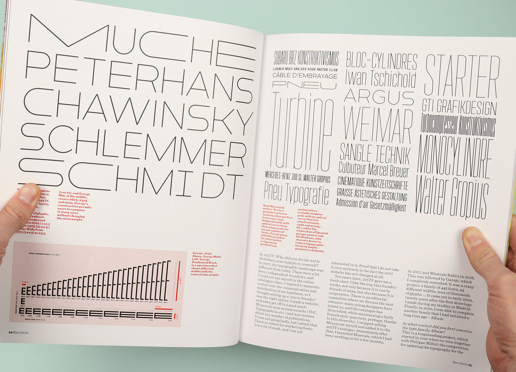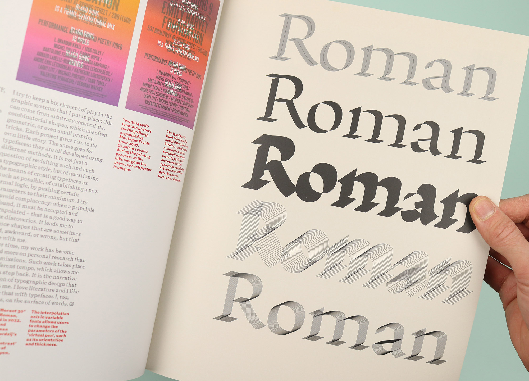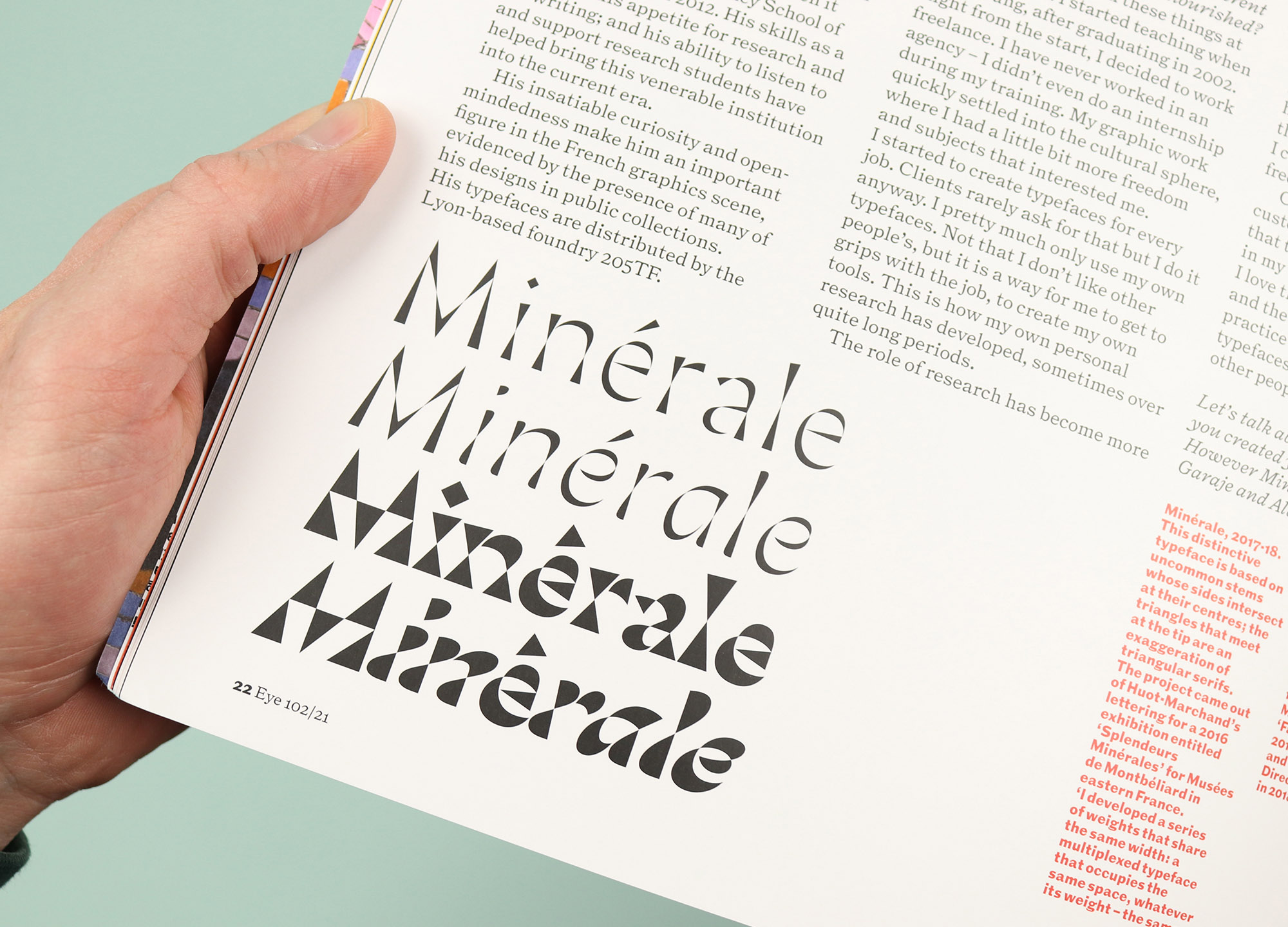 So flicking through this latest issue of Eye, I was pleased to see lots of ‘why’. For example the opening interview with French type designer Thomas Huot-Marchand tells the story of his career so far and explores the passion he feels for his craft. There are lots of samples of his work, all beautifully reproduced, but his final word is the most revealing. Speaking about the narrative dimension of typographic design, he says: “I love literature and I like to believe that with typefaces I, too, tell stories, on the surface of words.” There’s something wonderfully humble about that idea, and it makes perfect sense as the motivating force behind his fastidious attention to detail.
