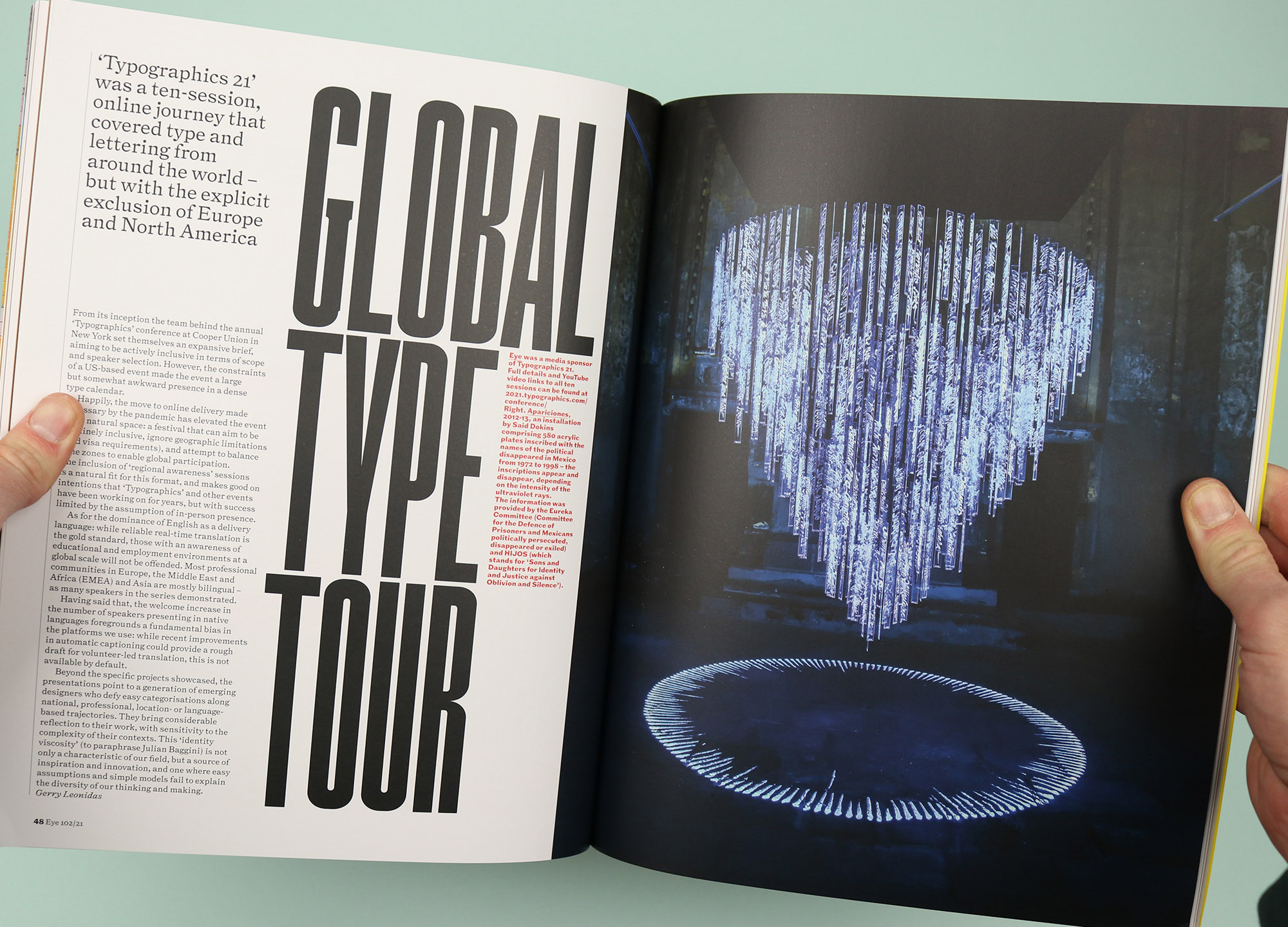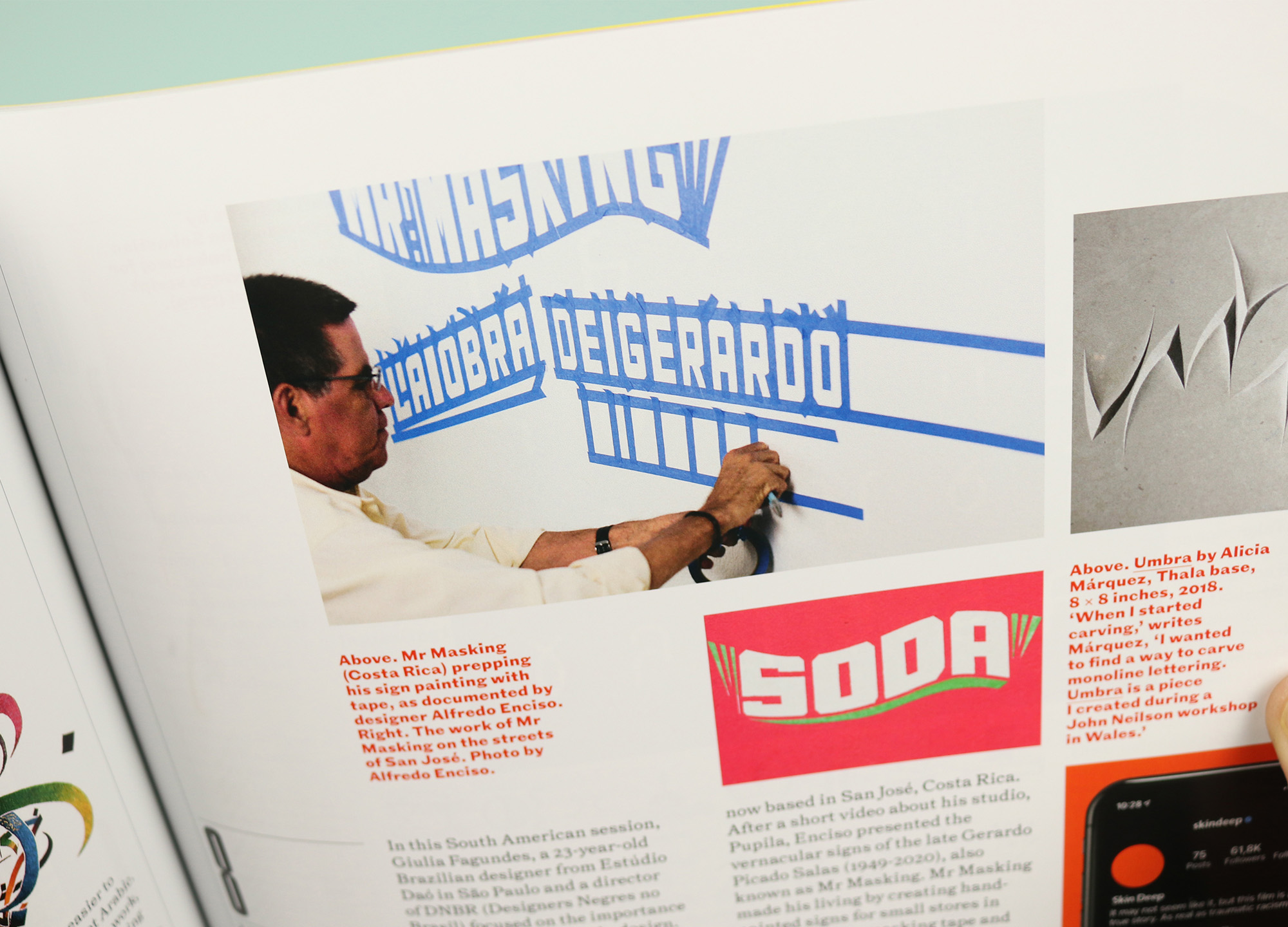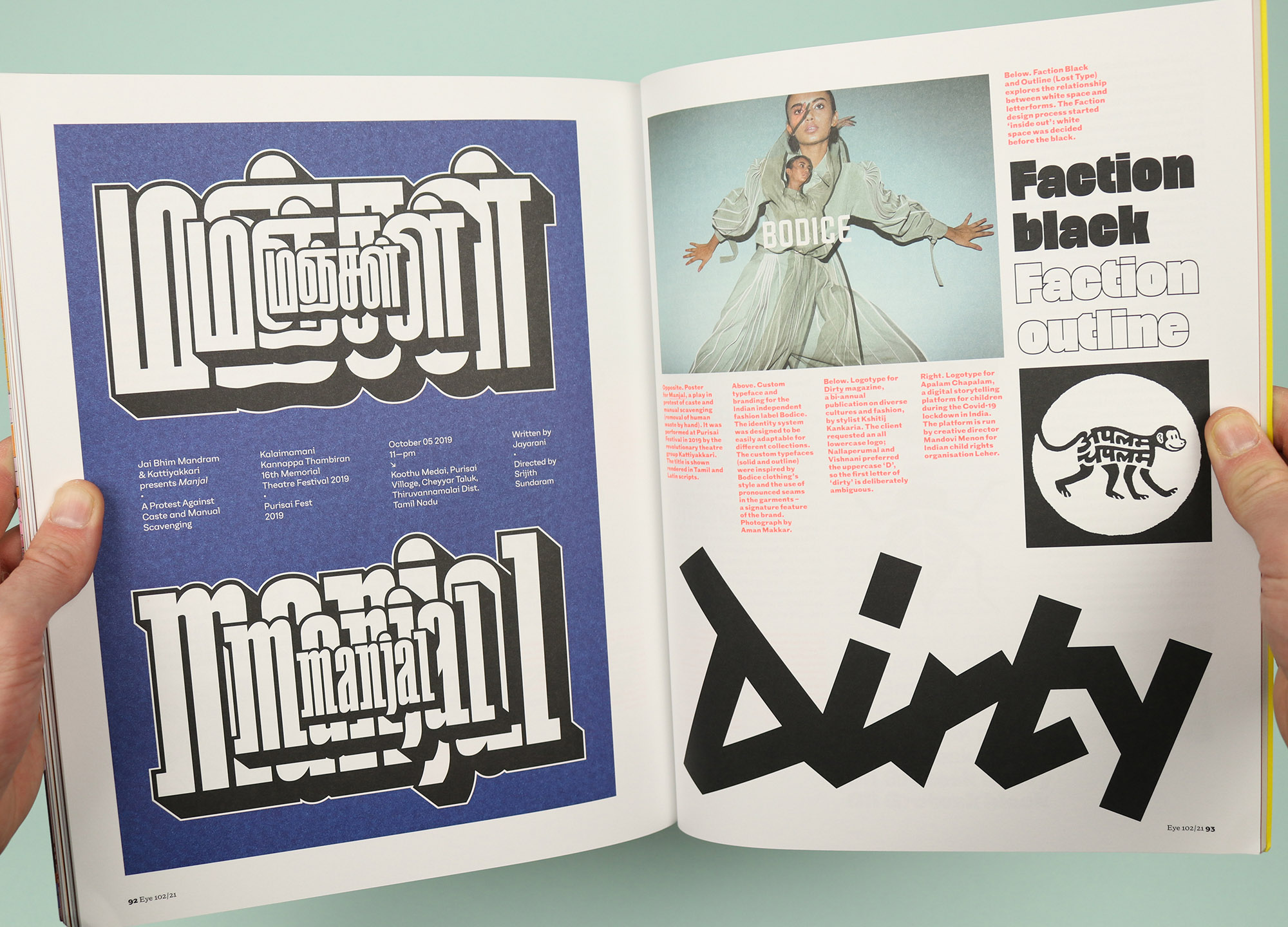 There’s also a report from the Typographics 21 event, which was held online last year, and which set itself the challenge of not featuring any work produced in Europe and North America. The event was held across 10 sessions and each one is given its own space here, each reported on by a different writer to provide a whistle stop tour of type from around the world. Of course this opens the door to languages with non-Roman letters, and there’s space here for Cyrillic, one for East Asian languages and scripts, and one for Arabic type design. But there are also special focuses, for example on the innovative work coming out of South America, or work united by the theme of activism and resistance.