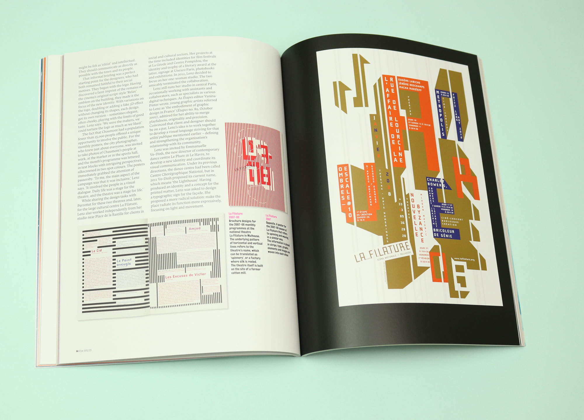 One brilliant piece is a retrospective of the work of Paris-based, German-born graphic designer Anette Lenz, whose work expresses a deep interest in the people on the receiving end of it. While working with Les Graphistes Associés in 1999, Lenz worked in opposition to an authoritarian mayor, who objected to her poetic, blurred designs for a city theatre in the south of Paris.