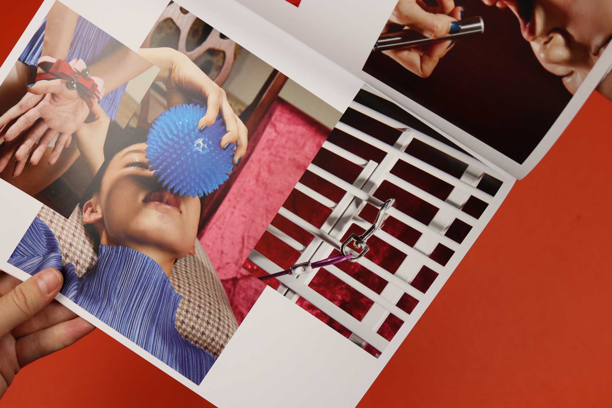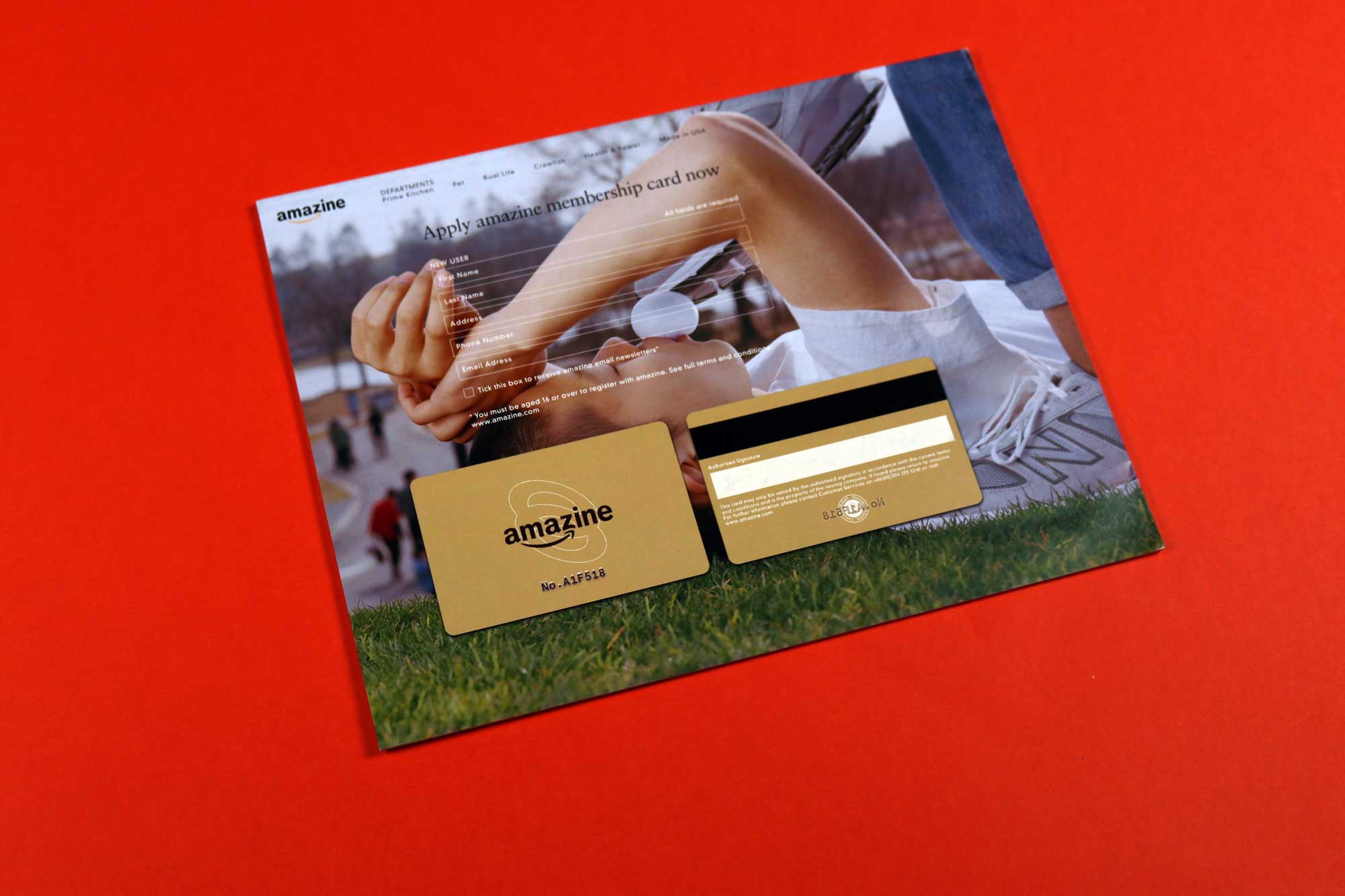 With an uncannily real-looking ‘Amazine’ gift-card as its cover-star, images inside are surreal. A model rests her head tenderly against a plant pot; a man wields a ginormous log; a woman licks a spiky rubber ball.
