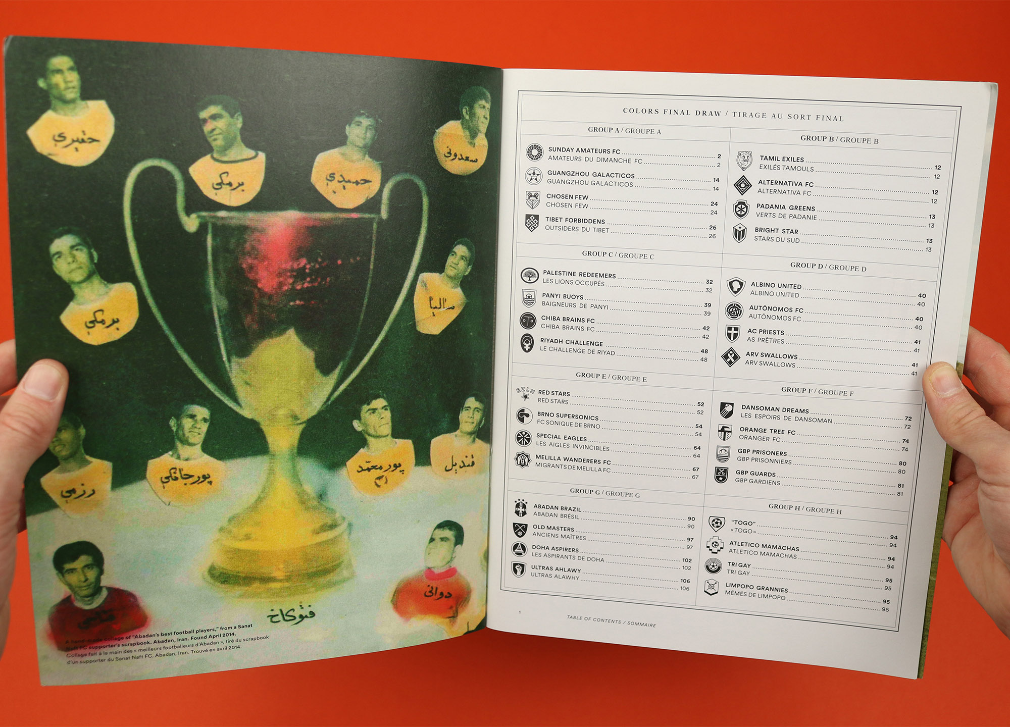 When I was pulling together magazines for this list I was sure I remembered Colors doing fun things with its content pages, but the only one I have that really fits the bill is the ‘Football’ issue, which displays the stories and teams featured in the magazine, arranged in eight groups as if facing off against each other in a tournament. It’s a smart idea that perfectly reflects the magazine’s combination of playfulness and fastidious attention to detail – every story and team is given its own club crest, presumably created by art director Ramon Pez and his designers, which is used both on the contents page and on the articles themselves.