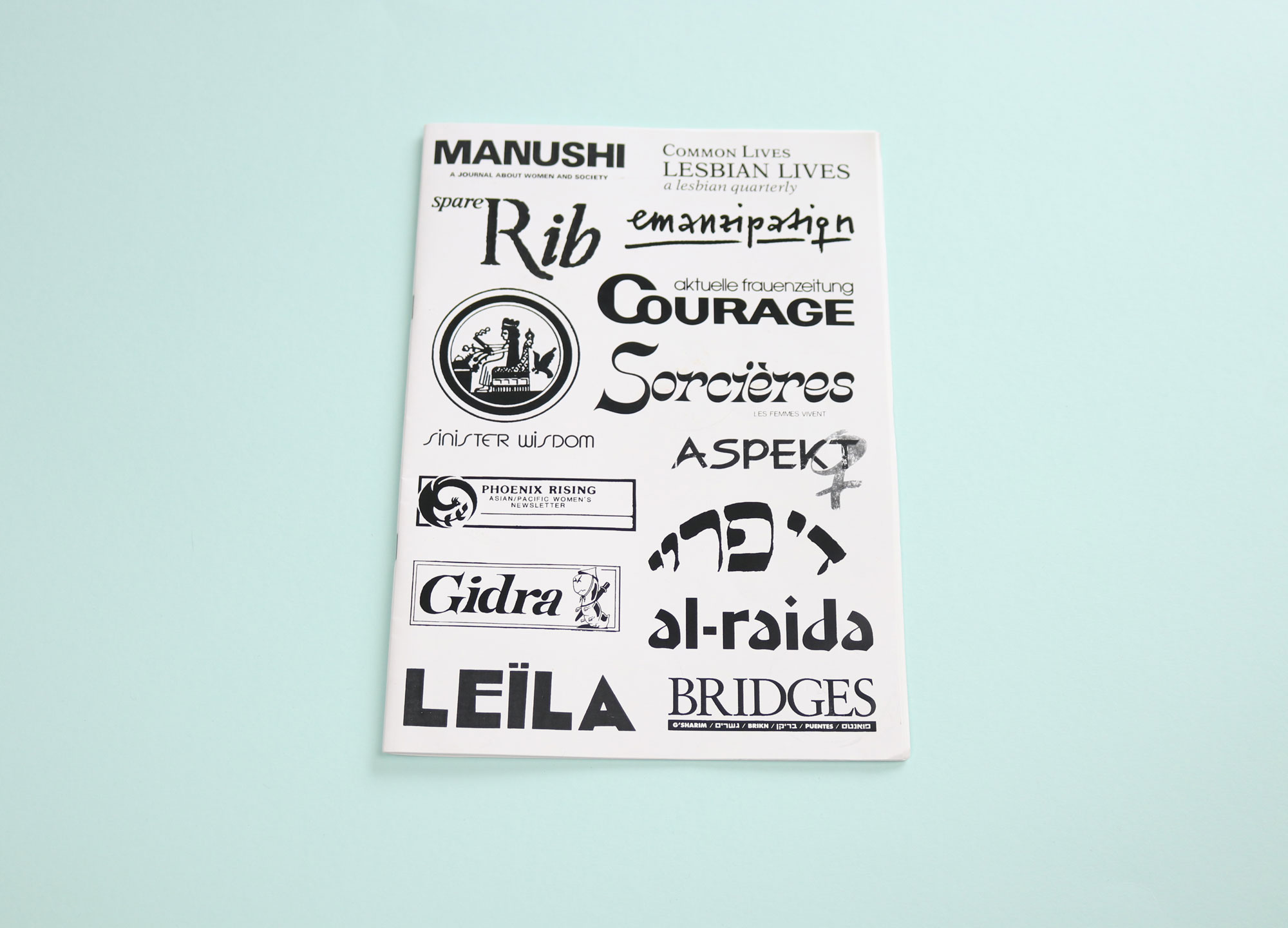 Feminist subjects are still mostly marginalised within design discourse. Often myself, Maddy [Morley] and Corin [Gisel] do feel alone. With the L.i.P collective, all of a sudden we were a group; we were all people who were isolated, but we had found one another. One of our collective, the type-designer Naïma Ben Ayed, discovered what is probably the rarest piece of print in the magazine: Leïla, a 1930s Tunisian women’s periodical. Another example is Pheonix Rising, an Asian-American lesbian newsletter, which was researched by Sophia Yuet See. That was not the easiest periodical to find — perhaps one of the hardest — but that’s what makes the search so significant. Combing through the history of print is a feminist labour that at its heart is about connection. When you find the piece of print you are looking for, it is almost like finding yourself.