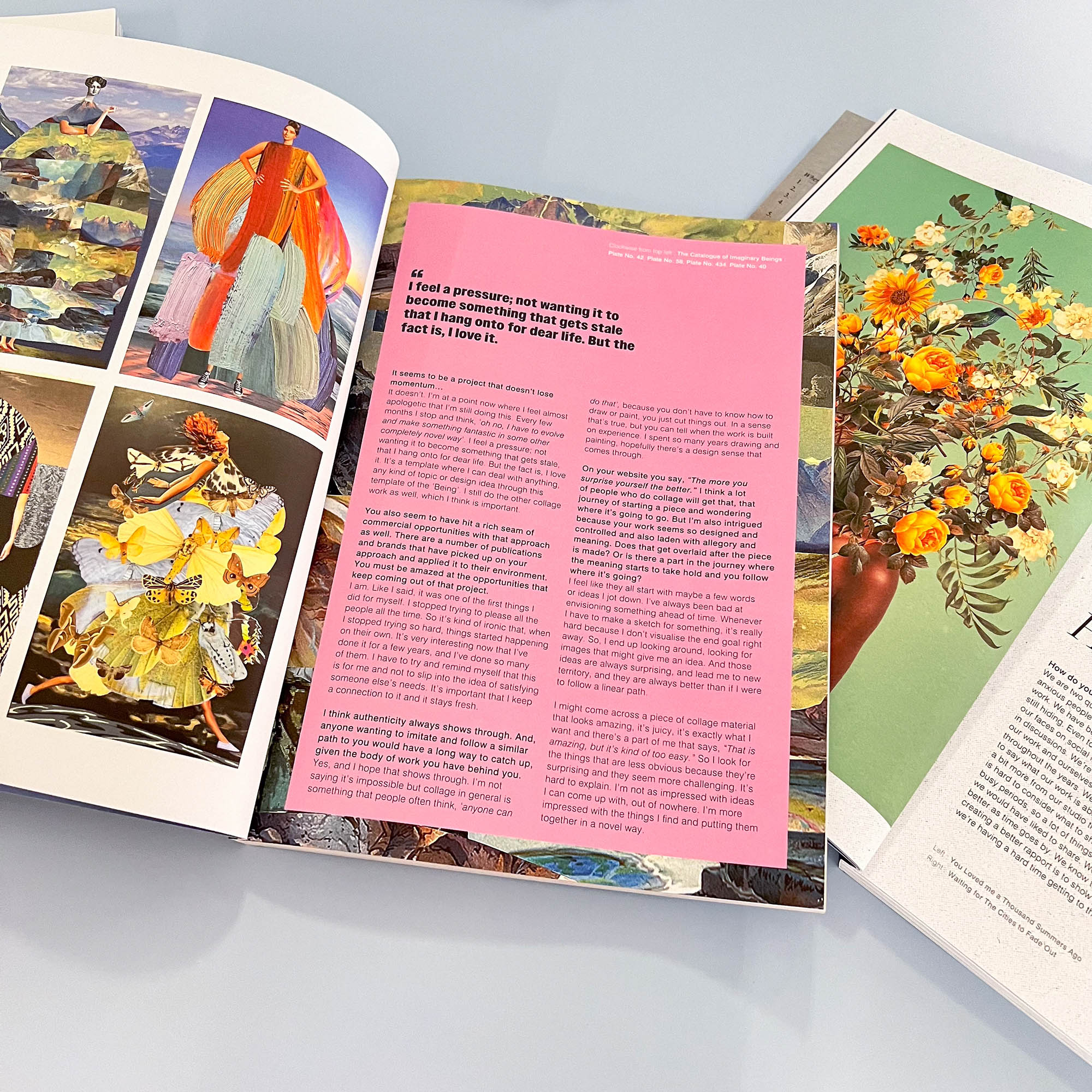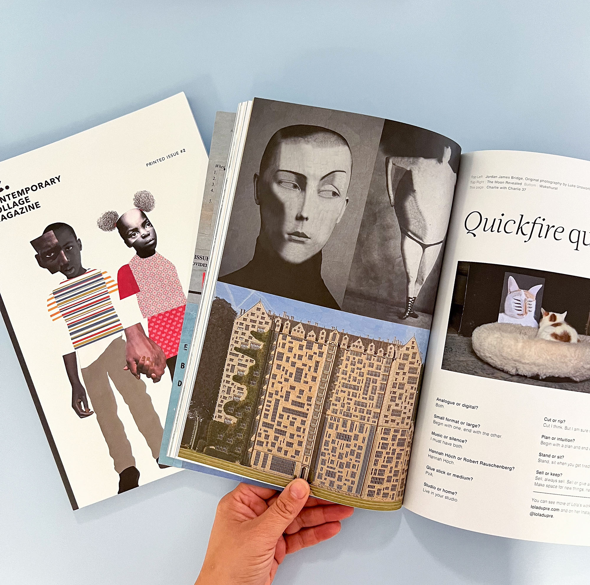 As they say, though, there was also, “a bit of an anomaly” in the fact that they were publishing a digital magazine about the very analogue subject of paper collage art, and so the print version was born earlier this year. But they haven’t stopped there, and they also make money from selliing collage packs, running an awards programme, hosting workshops and more. It’s an impressive setup, and it was lovely speaking with the three of them about their work, so I hope you’ll enjoy this conversation with Les, Molly and Wilf from Contemporary Collage magazine.