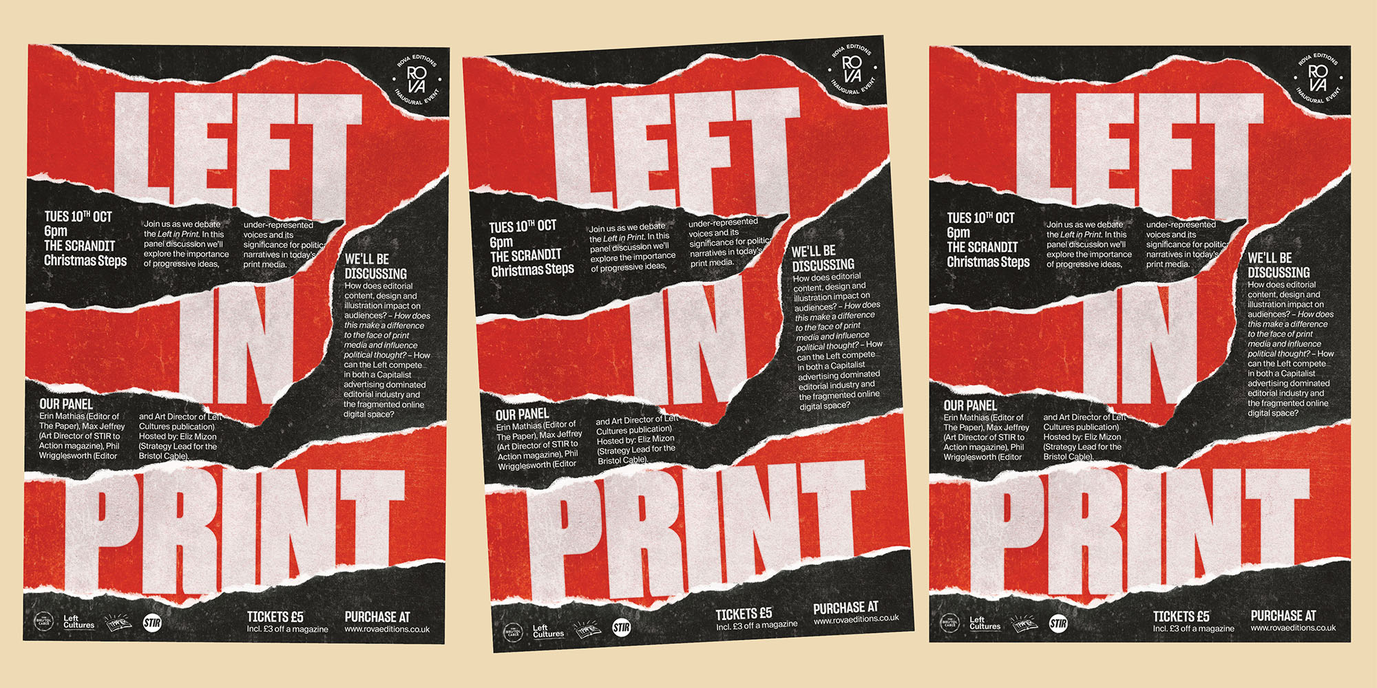 This deep sense of purpose often has a political undertone, but at an event in Bristol next month, four independent publishers will come together for a conversation that places politics front and centre. Left in Print will be held at Rova bookshop in the city’s Christmas Steps, and it will feature Phil Wrigglesworth (editor and art director of Left Cultures), Erin Mathias (editor of The Paper), and Max Jeffrey (art director of Stir to Action), hosted by Eliz Mizon (strategy lead for The Bristol Cable).