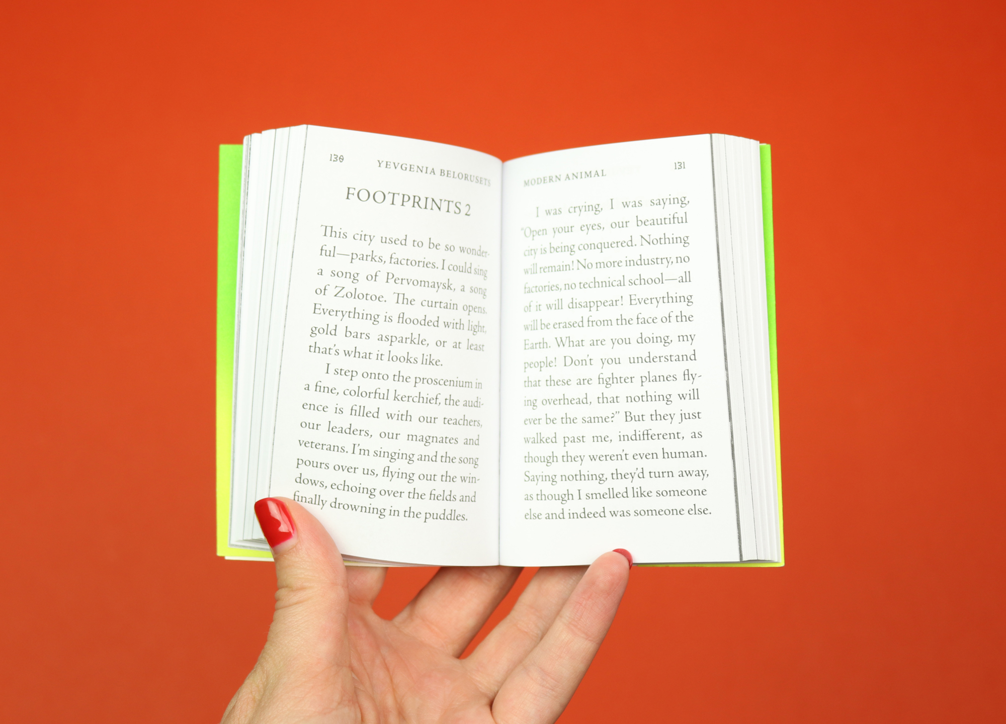 Speaking to me via email, Belorusets explains that she chose the lecture form to mimic “the Soviet form of education — when I was very young before the USSR collapsed”. But while many lectures are based on interviews Belorusets conducted while travelling through war-torn regions of Ukraine, Modern Animal is in essence a work of fiction. Throughout the course of the tiny book, the boundary between human and animal shifts and changes, with lectures voiced by animals.