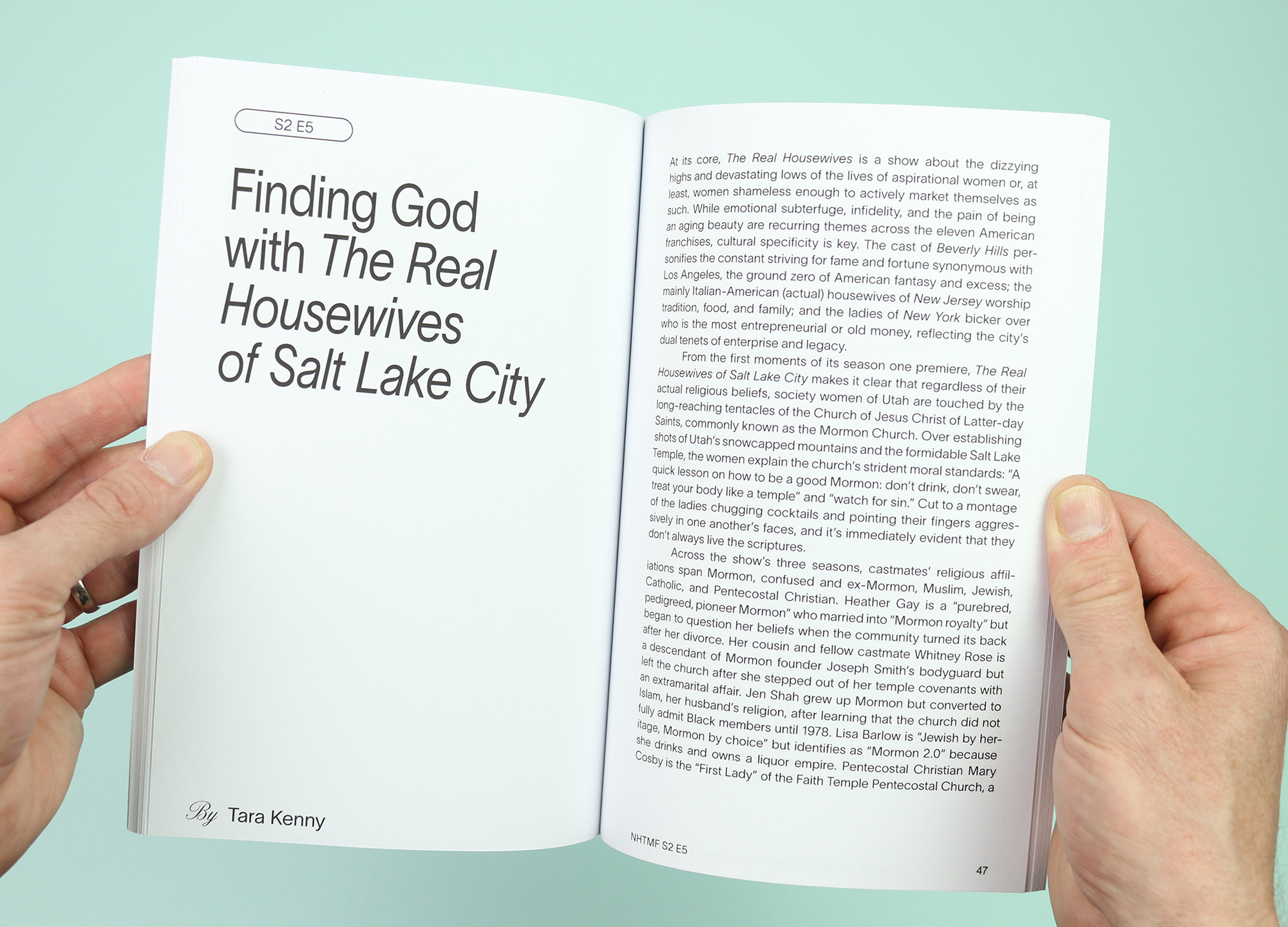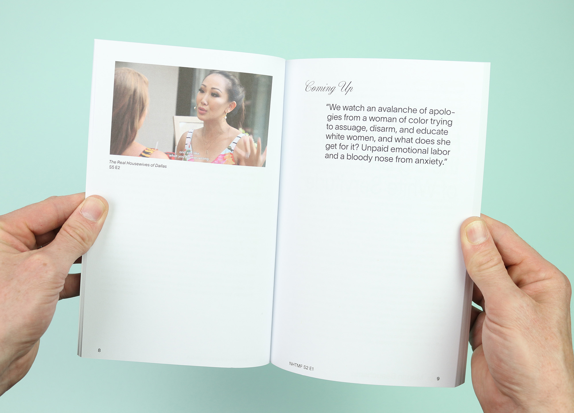 We talk a little bit about the very stripped-back design and how that has been informed by Elena’s archival obsession with screen grabbing important scenes from whatever she’s watching, and I’ve included a few pictures below to give a sense of how they work in the layout. Keeping things simple definitely helps to foreground the writing and present this as a serious consideration of reality TV, and as Elena says at one point, it should hopefully speed up the production of the next issue too!