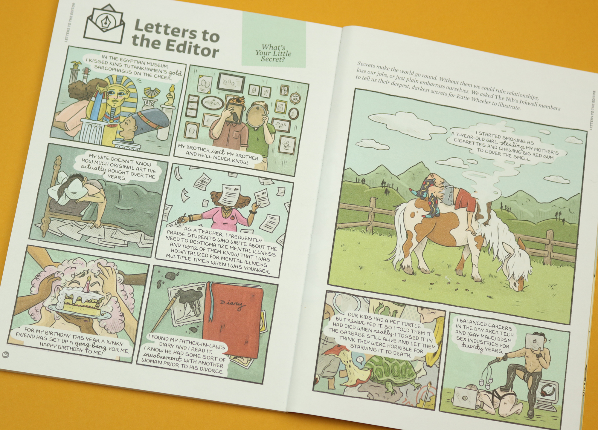 But the most compelling revelations are saved for the final pages. Every issue, The Nib asks its readers to send in letters to the editor related to the theme; this time it asked for secrets. The stories are wild, made wilder by the fact that they were divulged not by writers or artists for “content”, but by readers at home, sending off their deepest darkest secret on a whim, or because they simply couldn’t keep it inside a second longer.