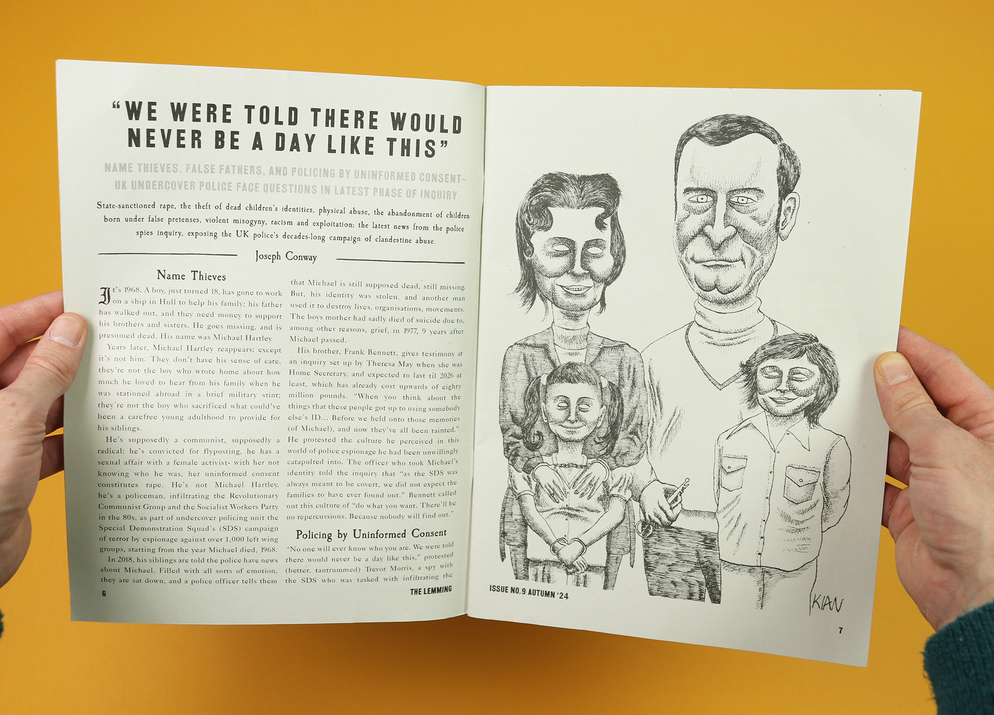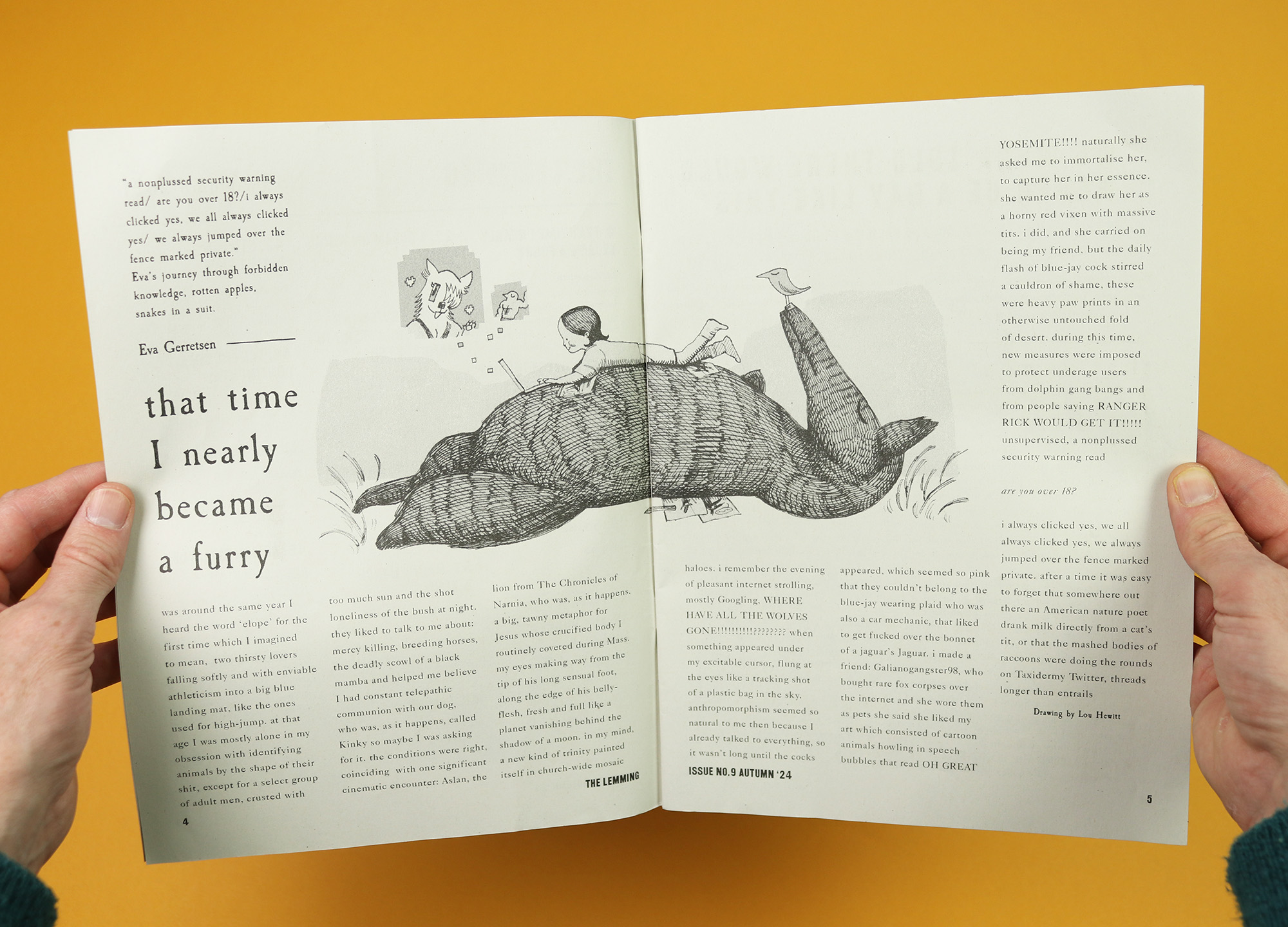 I spoke with Gabriel at the end of last year, along with editor Beth Jones, and political editor Joseph Conway, and I hope our conversation gives a sense of the magazine’s tone. Because while The Lemming includes lots of serious storytelling, it’s also full of cartoons, and there’s a cryptic crossword, and a story about human statues, and one about furries, and the whole package maintains a general sense of fun amongst the difficulty.