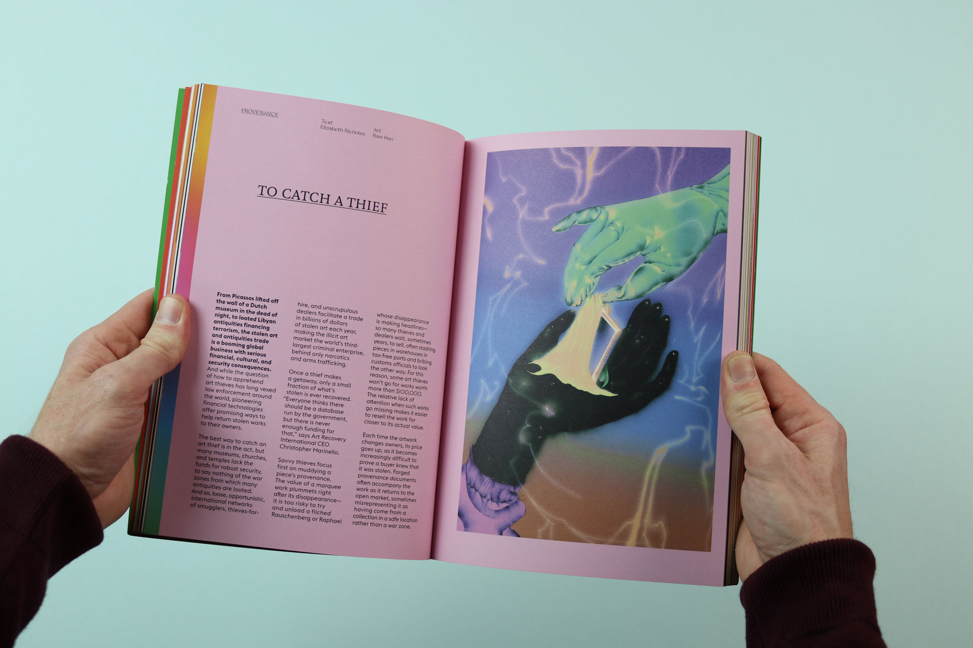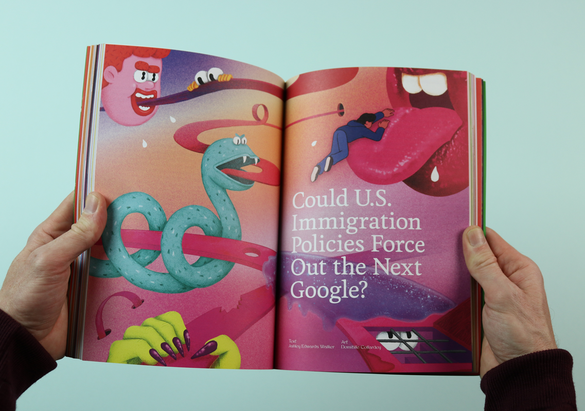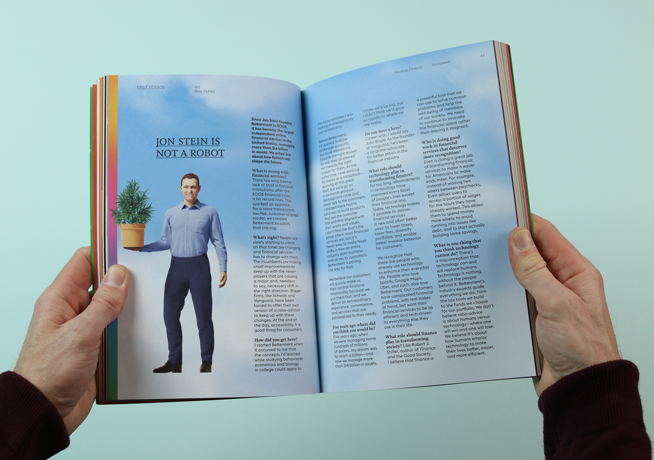 Elana Schlenker and Mark Pernice are the art directors of Hacking Finance, a new magazine that takes a progressive and provocative look at business and our relation to money. This first issue is themed around ‘movement’, and features stories on a wide range of subjects, from the man trying to make a commercially viable hydrogen-powered car, through to the disruptive and creative impact that skateboarding can have on cities.