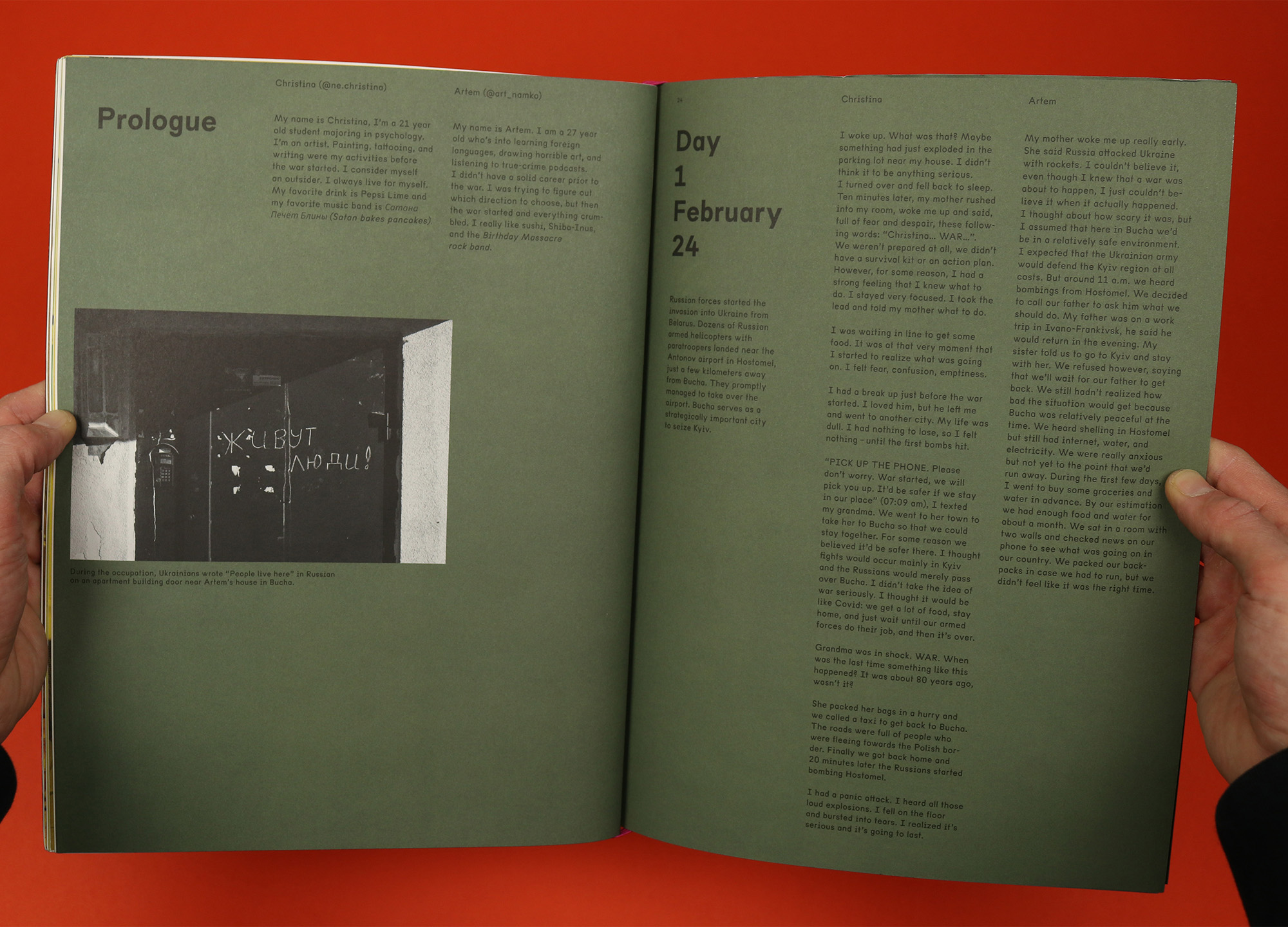 Christina’s initial response to the Russian invasion felt particularly understandable – convinced that they should stay away from nearby Kyiv because it was more likely to be the target of Russia’s forces, she persuaded her mum that they should stay at home. “I didn’t take the idea of war seriously. I thought it would be like Covid: we get a lot of food, stay home, and just wait until our armed forces do their job, and then it’s over.” Their accounts of life over those days is almost unbearably tense, filled with fear of the enemy but also frustration at the selfishness of neighbours, confusion spread by rumours and misinformation, and occasional moments of hope and humanity.