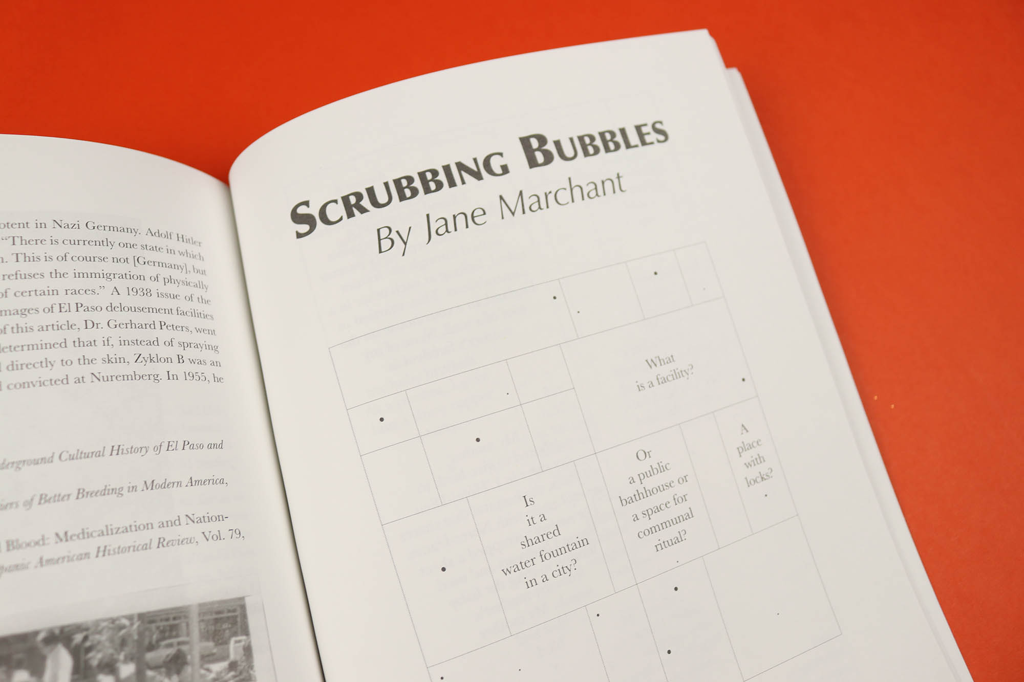 Panic-buying toilet paper and spending extra time washing our hands, it feels like everyone is getting a little obsessed with the bathroom at the moment. Of course there’s an independent magazine that was already way ahead of that particular curve, and Facility is a clever, provocative title from New York that explores the many different roles bathrooms play in our lives. For example Chloe Bass’s The Book of Everyday Instruction investigates the ways people arrange themselves in space and includes an installation in a public toilet, with text printed on toilet paper, as well as on the walls, stall doors and mirrors.