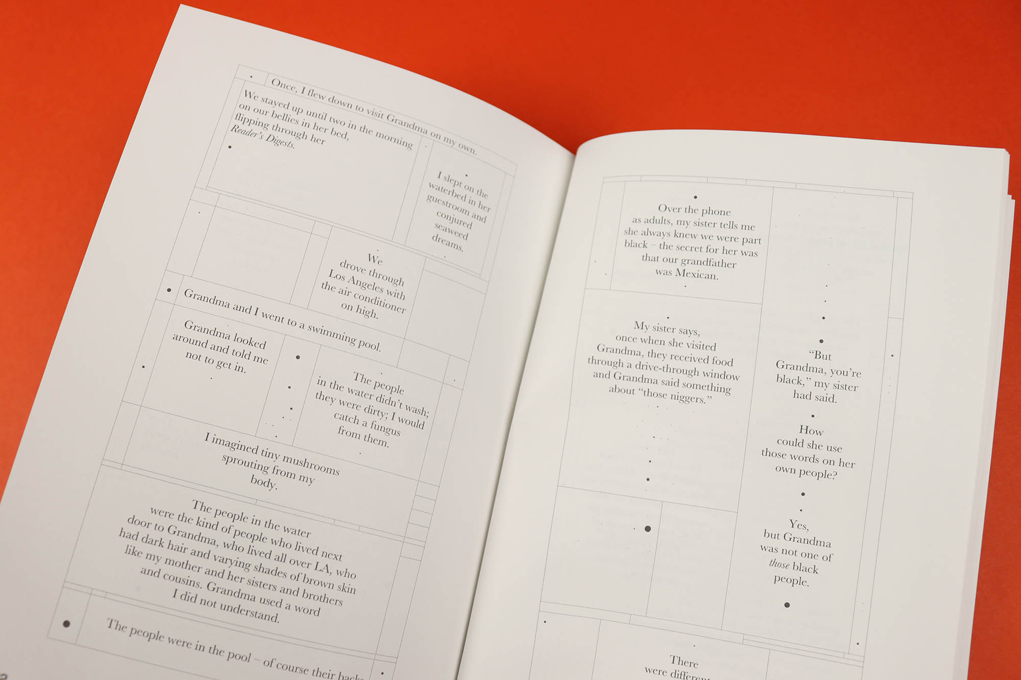 Meanwhile Scrubbing Bubbles by Jane Marchant is an inventive piece of writing that cascades down 18 pages, recounting key bathroom-based moments from her family’s history and washing away at the layers of racism that have built up over generations of mixed race heritage. It’s quiet and poignant and the unusual layout will have you snaking your way down the pages.